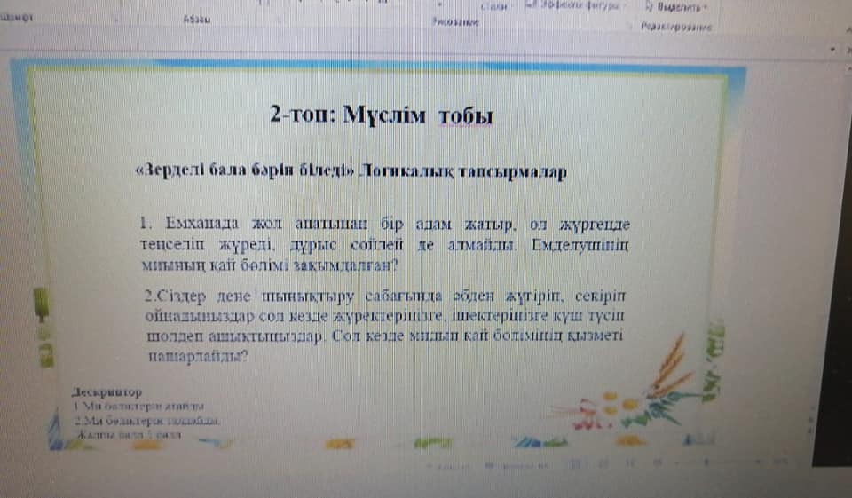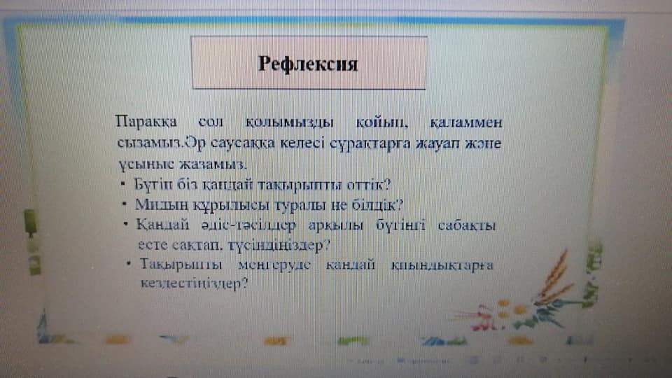 18 ақпан 2021 0 1 2 3 4 5 Биология пәнінен «Ми. Ми бөлімдерінің құрылысы мен қызметтері» тақырыбындағы ашық сабақ АШЫҚ САБАҚТАРПәні: биологияКүні: 18.02.2021ж. Сыныбы: 7 "В"Ашық сабақтың тақырыбы:«Ми. Ми бөлімдерінің құрылысы мен қызметтері»Пән мұғалімі: Г.А.Тыныштыбаева Осы беттің QR-коды:QR-код этой страницы: