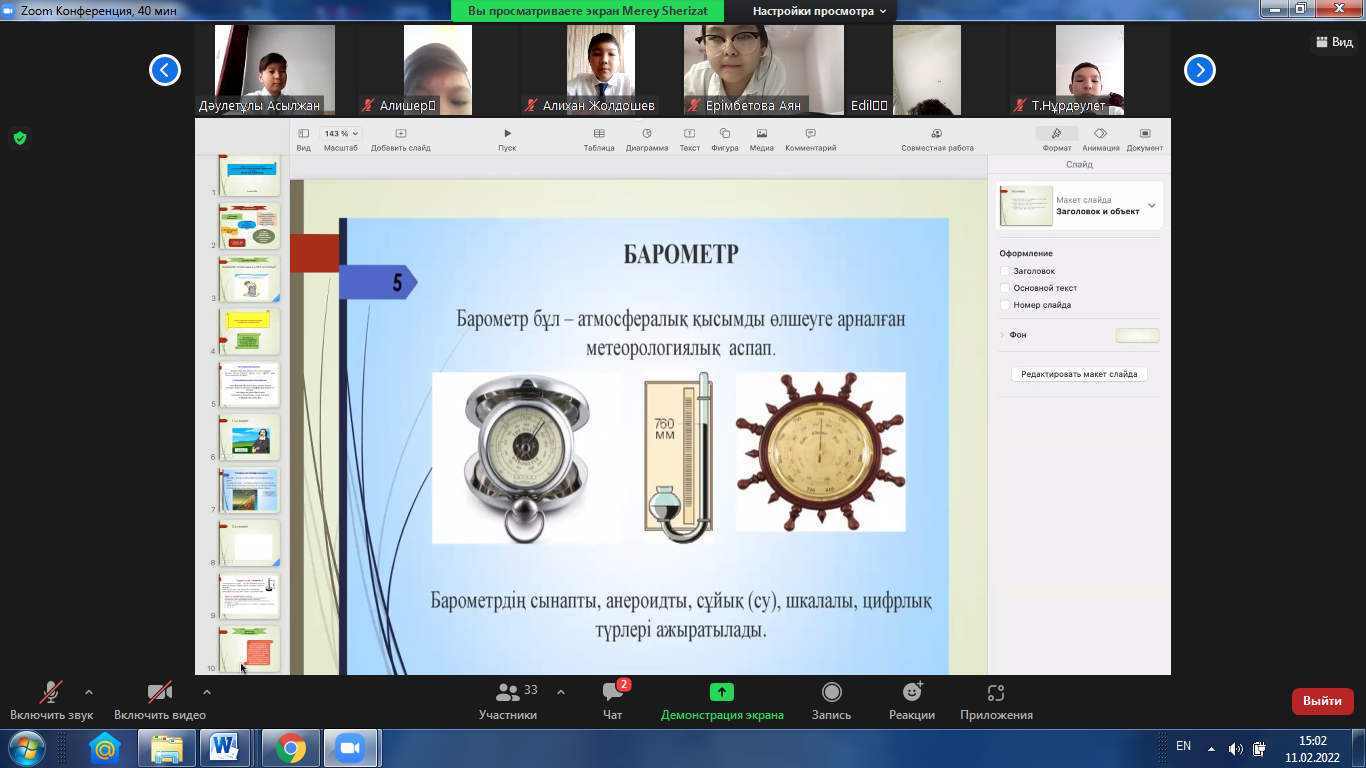 Мектебіміздің физика пәнінің мұғалімі Ергеш Жәудір Кенжебайқызы 7 "Г" сыныбына "Атмосфералық қысым. Атмосфералық қысымды өлшеу" тақырыбында ашық сабақ өтті.