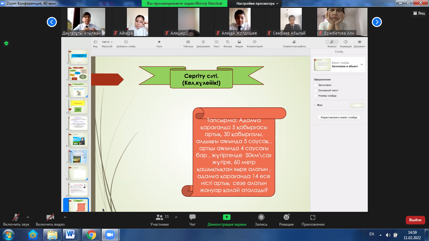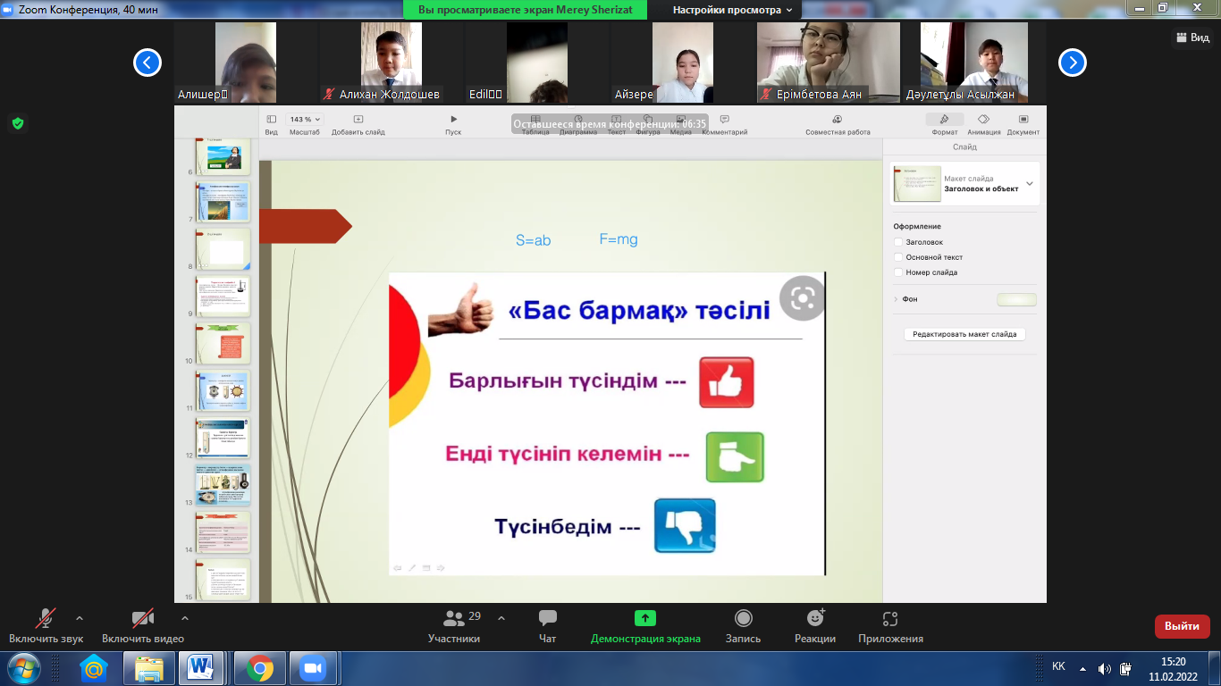 Көрнекілік: слайд, тәжірибелік құралдар.
