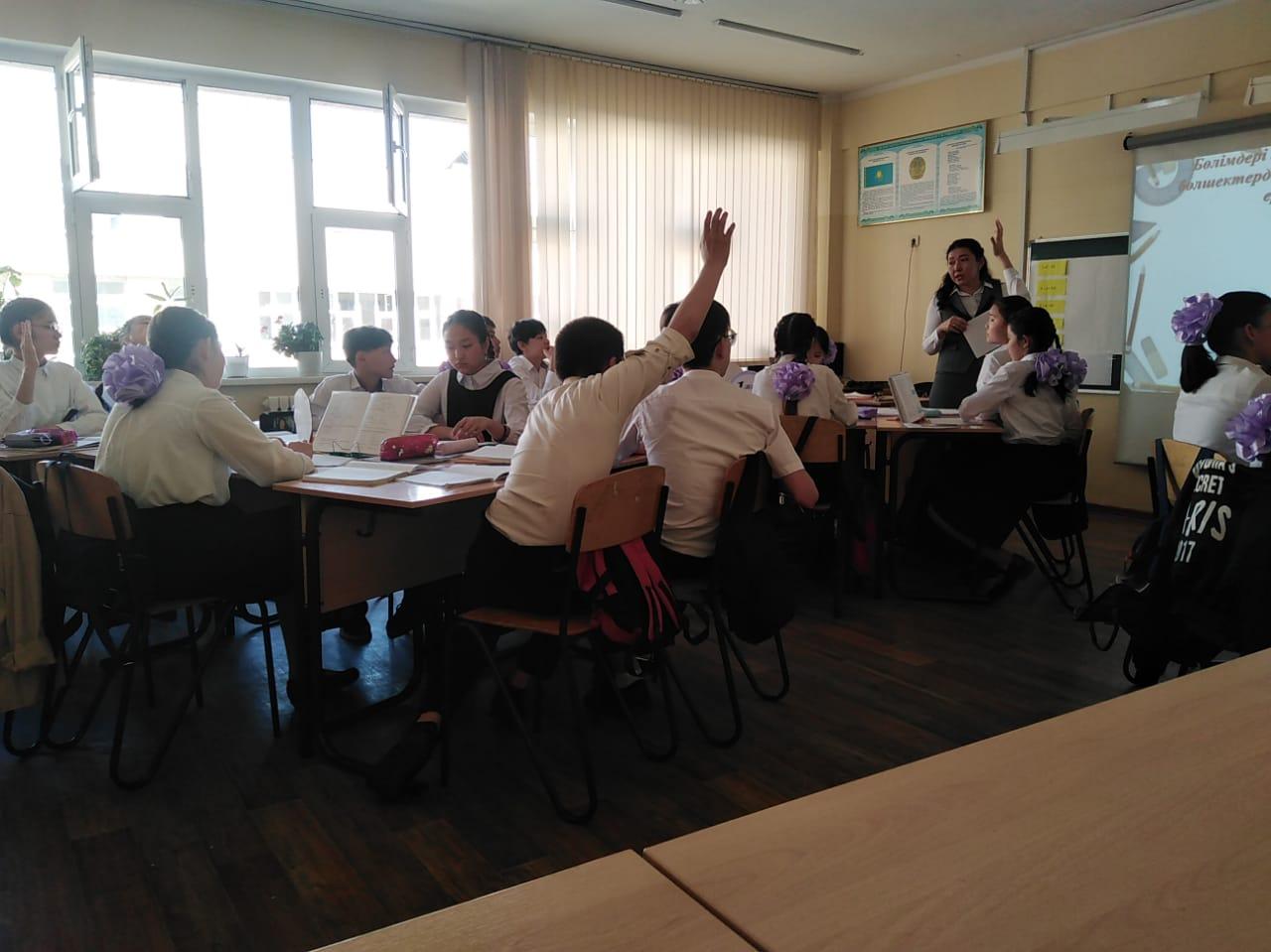 «Елімнің болашағы жастар қолында» тақырыбында жас мамандар онкүндігі аясында математика пәні мұғалімі Есенгелді Айдана 7 «З» сыныбы оқушыларымен «Алгебралық бөлшектерге амалдар қолдану, бөлшектерді қосу және азайту» тақырыбында ашық сабақ өтті.