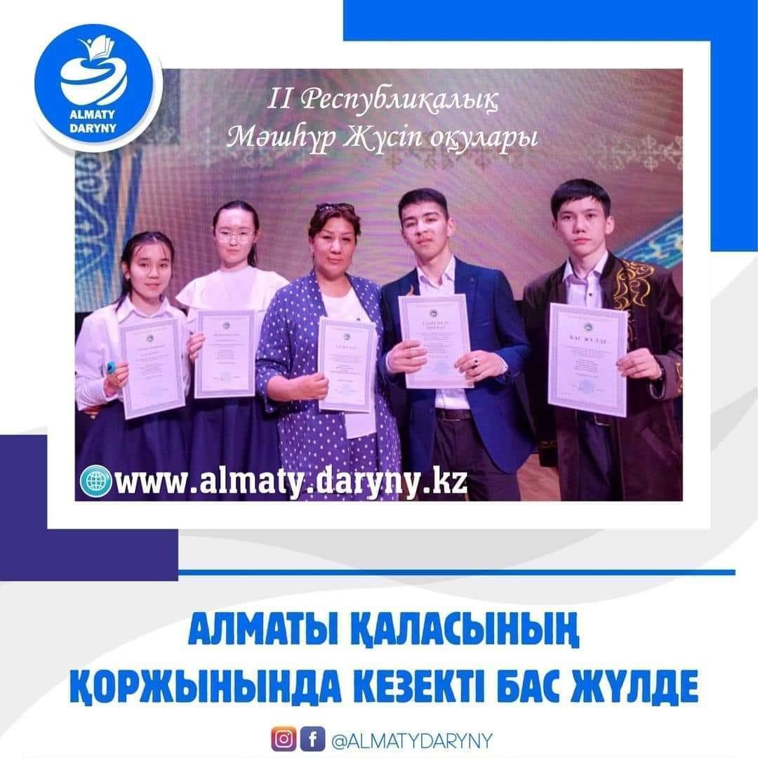 🔷 Алтын арқаның құтты мекені атанған Баянауыл өңірінде қазақтың белгілі ақыны, фольклоршы, тарихшы, этнографы Мәшһүр-Жүсіп Көпейұлына арналған республикалық "Мәшһүр-Жүсір оқулары" байқауының қорытынды кезеңінде «Мәшһүр-Жүсіп шығармалары және «Ұлы даланың ұлы есімдері»» бағыты бойынша мектебіміз оқушысы Халиолла Адия "Өзгеше ойлы ұлан" номинациясының иегері атанды.
