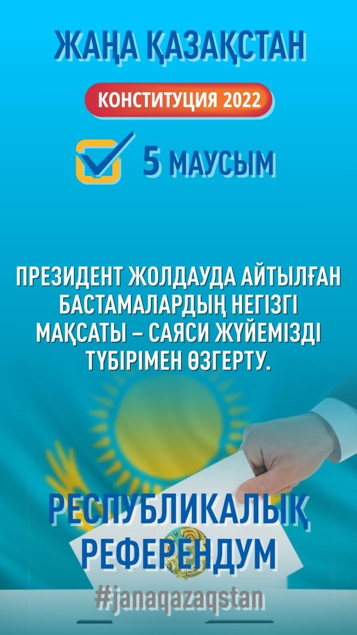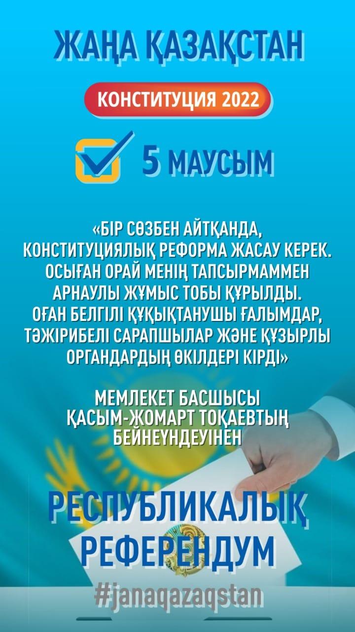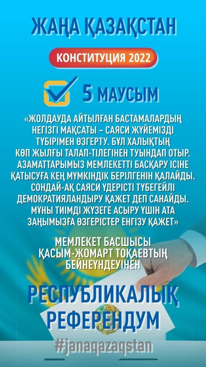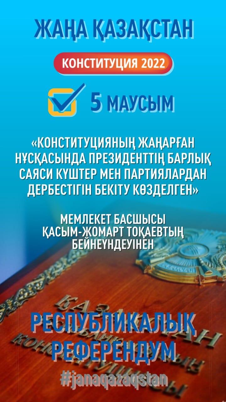 Мемлекет басшысы 5 маусымда Қазақстан Республикасының Конституциясына өзгерістер мен толықтыру енгізу туралы референдум өткізу жайындағы Жарлыққа қол қойды.