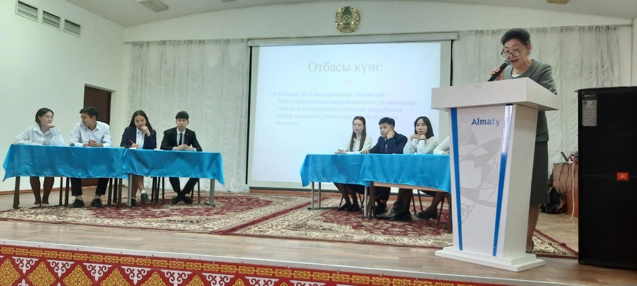 15.09.2022ж. күні «Отбасы – тәрбиенің бастауы, ұлттың тірегі» тақырыбында 10-сыныптың 124 оқушысына тарих пәнінің мұғалімі Ж.Ж.Садықова сынып сағатын өткізді. Сынып сағатының мақсаты-отбасы балаға тәрбие берер ортасы екендігін түсіндіру. Мықты отбасы ұлтты ұйыстыратын орта екендігін ұғындыру. Қоғамдағы отбасының орнын айқындау. Іс-шара жоспарлы түрде өткізілді. Ж.Садықова отбасы туралы түсіндірме жұмыстарын жүргізді. Отбасы туралы слайдтар көрсетілді. Оқушылар өздерінің слайд бойынша ойларын айтты. Б.Зейнелхан «Әкеге мың алғыс», «Анама» әндері орындады. Іс-шаралар барысы оқушылардың көңілінен шықты.