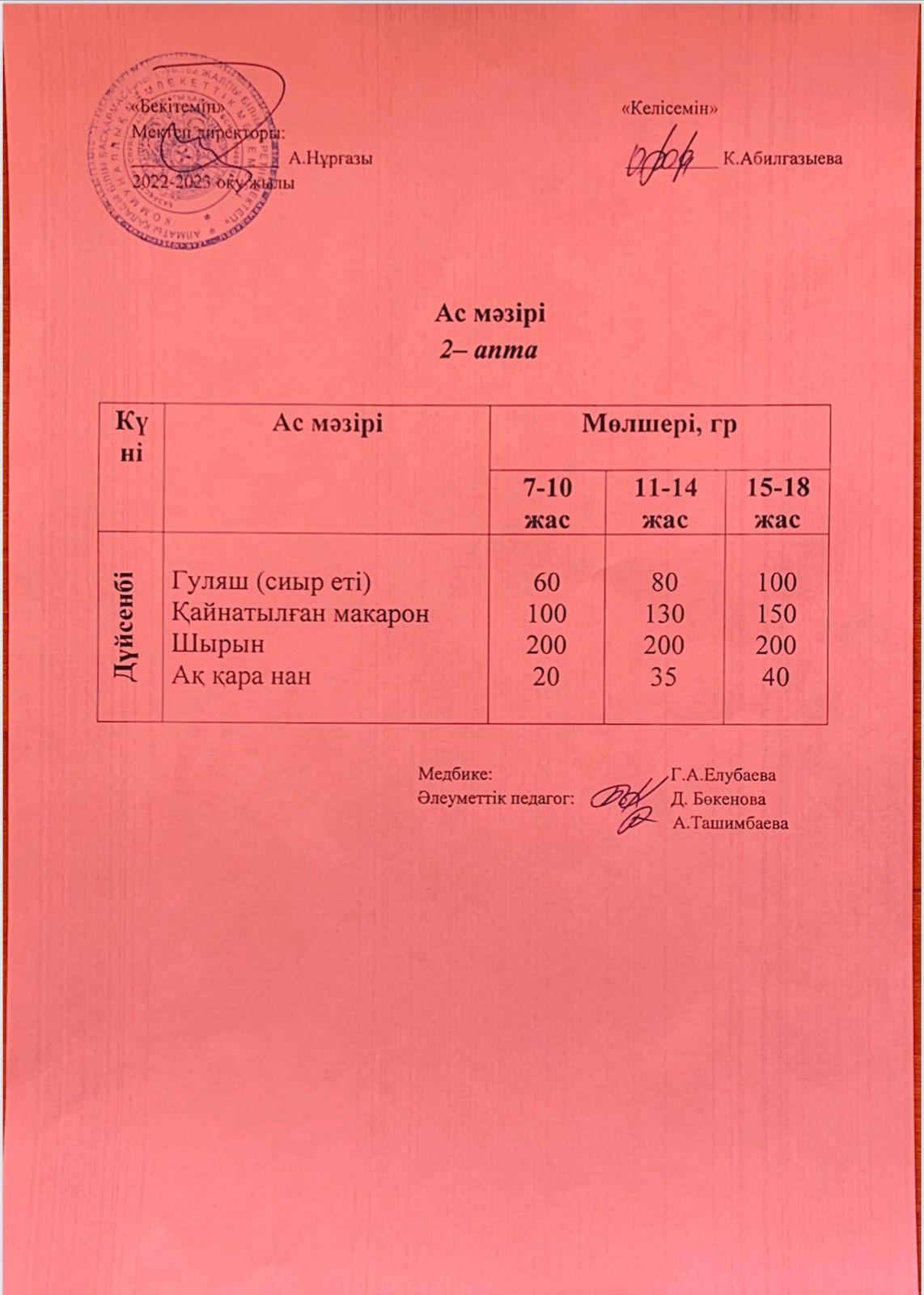 » Ас мәзірі