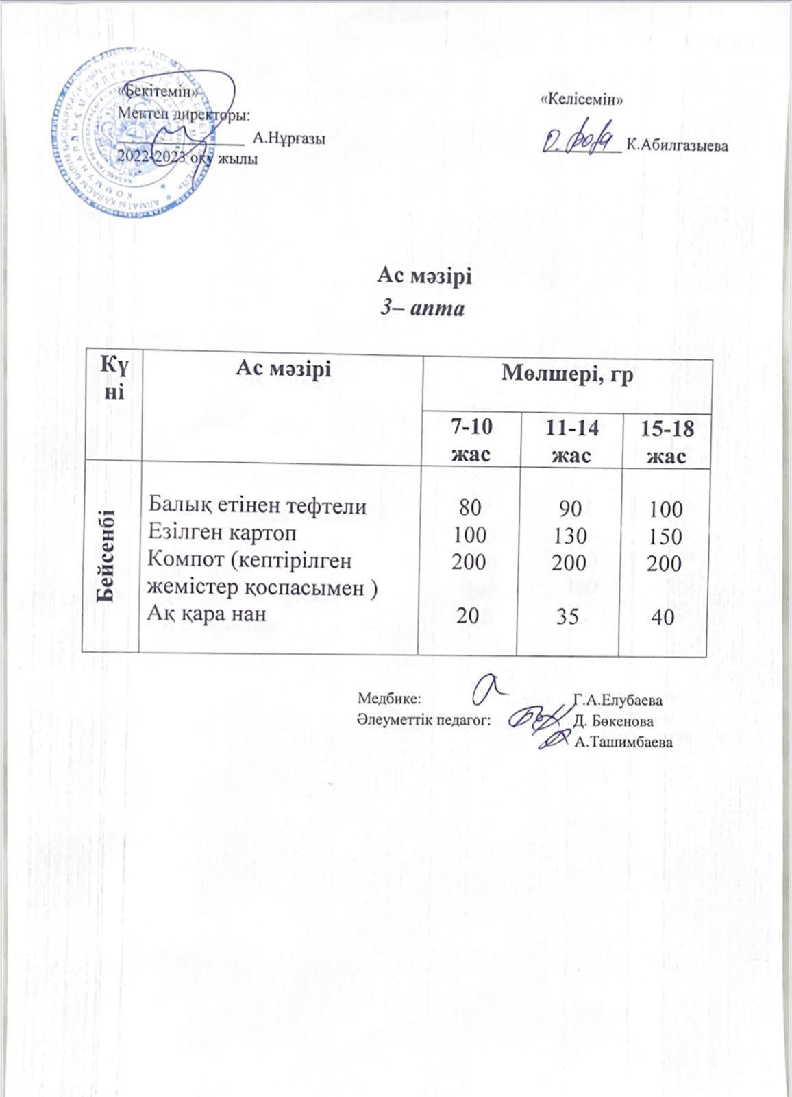 » Ас мәзірі