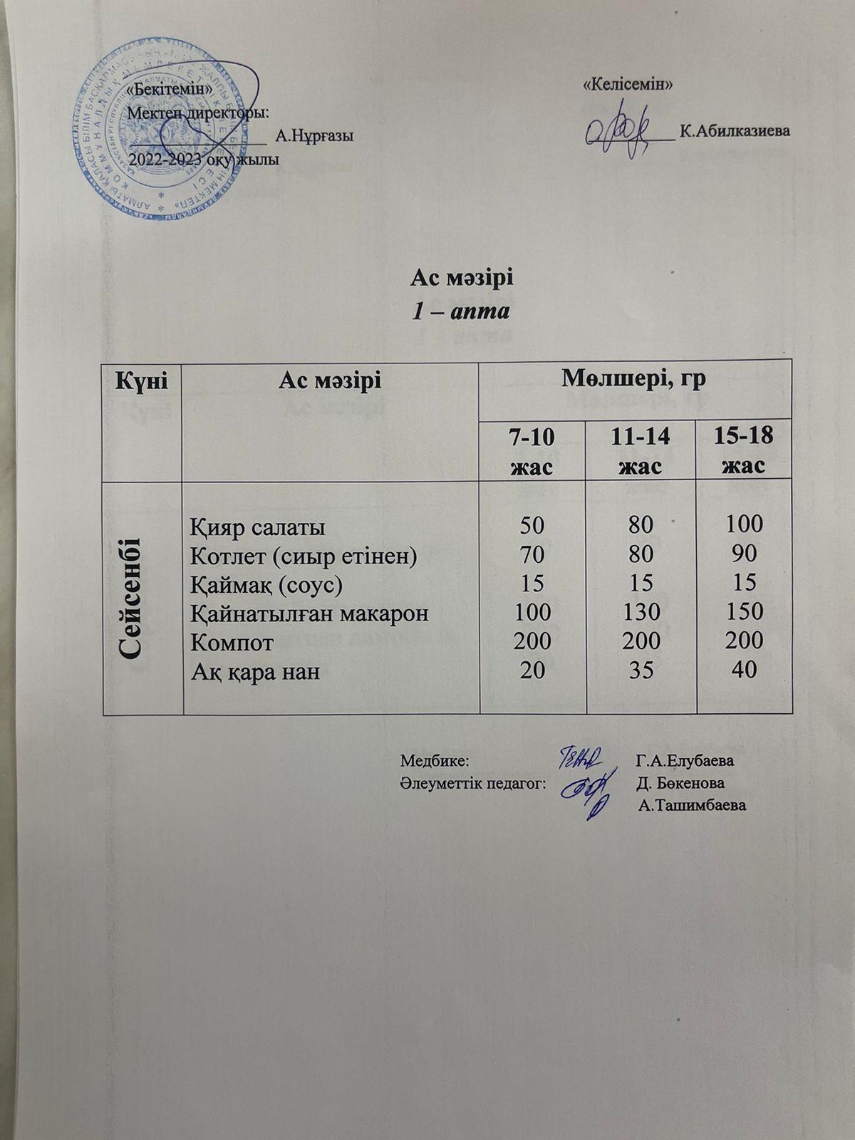 » Ас мәзірі