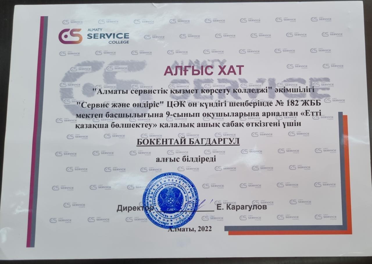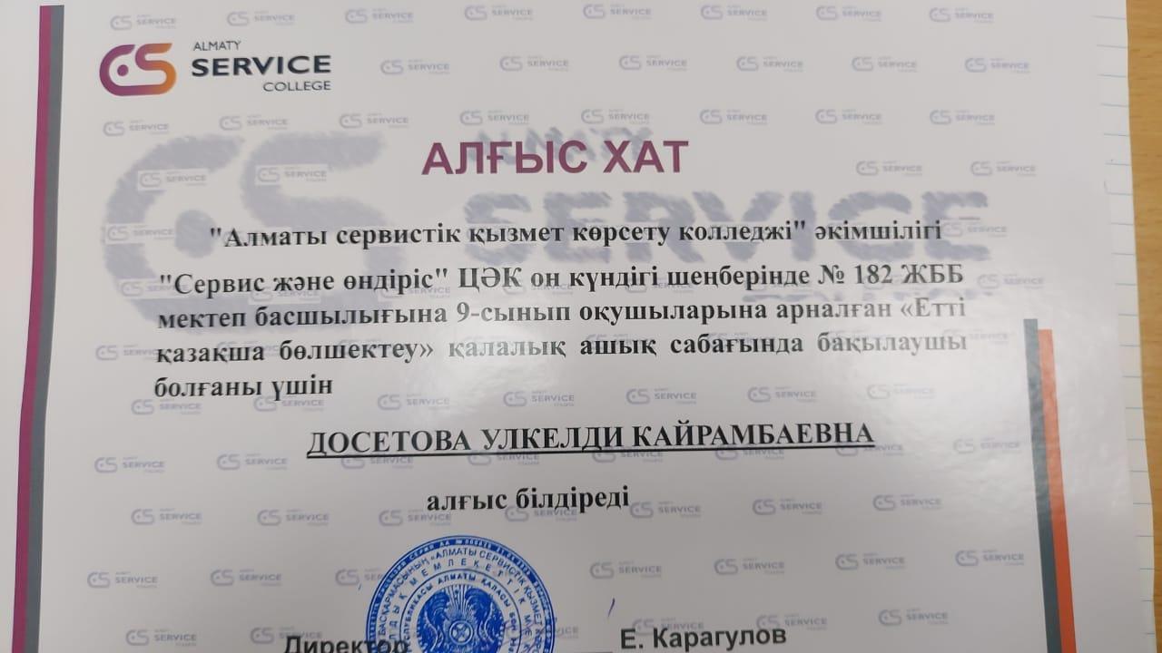 Сонымен қатар, мектебіміз ұжымын, мектебіміз мұғалімдері Досетова У.К., Бөкентай Б. Алғыс хатпен марапаттады. Құттықтаймыз!