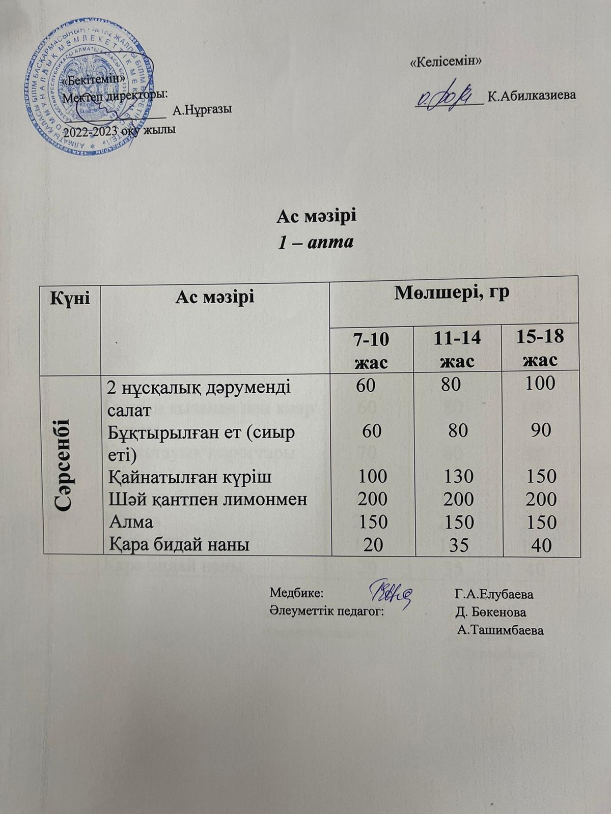 » Ас мәзірі