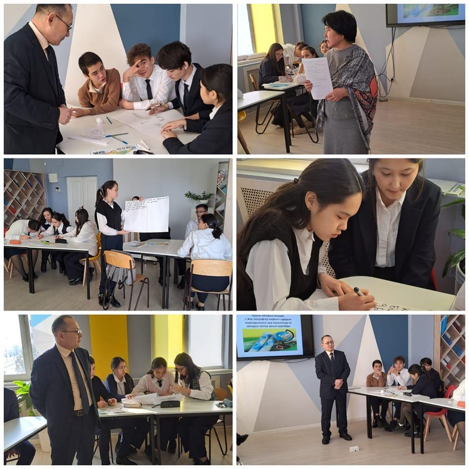 Ғылыми-жаратылыстану әдістемелік бірлестігінің онкүндігі аясында география пәні мұғалімі Қосмұратов Қайсар Нұрманбекұлы 9-сынып оқушылары арасында «География әлеміне саяхат» тақырыбында интеллектуалды сайыс сабақ өткізді. Мақсаты: оқушылардың география пәніне деген қызығушылықтарын оята отырып, сыни ойлау, шығармашылық, қарым-қатынас және ынтымақтастық мүмкіндігін бірлестіре ұтымды пайдалану. Сайыс нәтижесінде І орын 9 «Б» сынып, ІІ орын 9 «З» сынып, ІІІ орын 9 «А» сынып оқушылары жеңіп алды. Сонымен қатар, Қайсар Нұрманбекұлы алдағы уақытта география клубын ашуды жоспарлап жүргенін айтты.