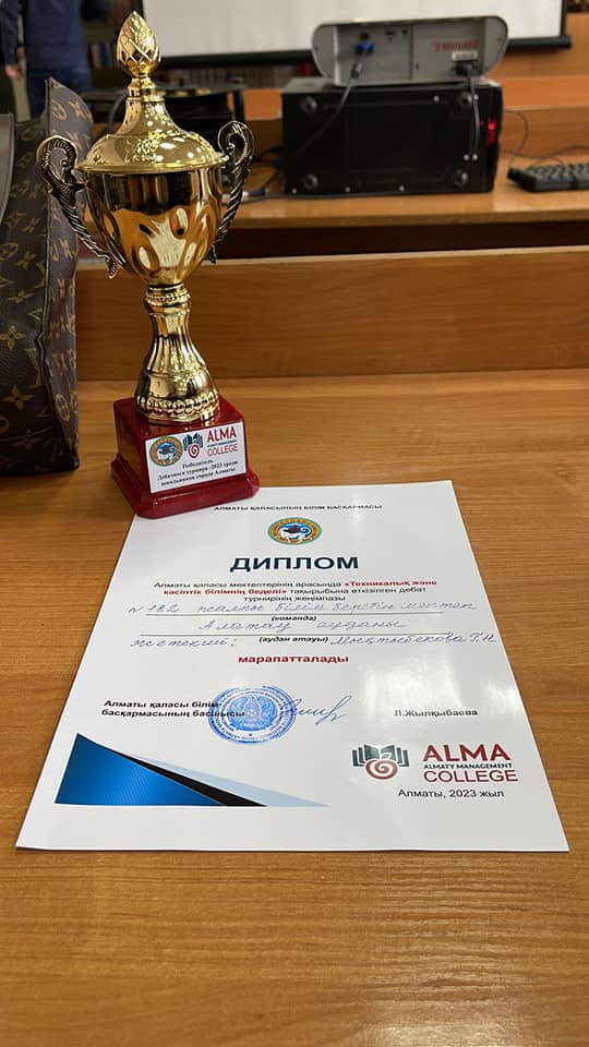 Алматы қаласы мектептерінің арасында "Техникалық және кәсіптік білімнің беделі" тақырыбында өткізілген дебат турнирінде мектебіміз дебат тобы жеңімпаз атанды. Жетекшісі қазақ тілі мен әдебиеті пәні мұғалімі Гүлфайруз Мықтыбекова