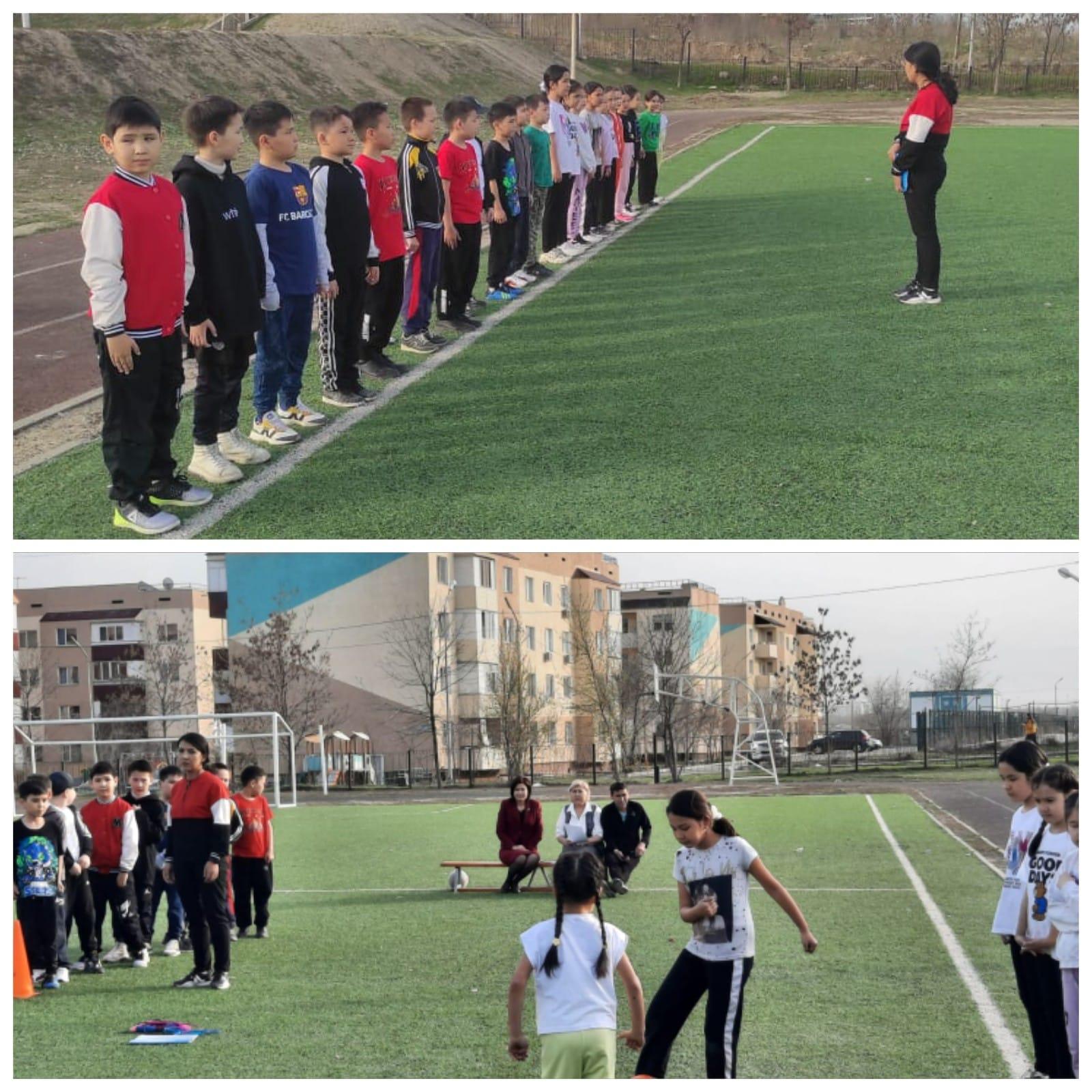 04.04.2023ж. күні эстетикалық пәндер бірлестігінің «Өнерлі ұрпақ-кемел болашақ» тақырыбындағы онкүндігі аясында дене шынықтыру пәні мұғалімі Калинбетова Жарқынай 3 "Г" сыныбына «Жарыс элементтері бар ойындар» тақырыбында ашық сабақ өтті.