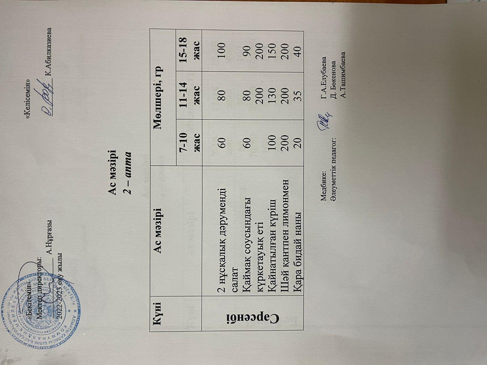 » Ас мәзірі