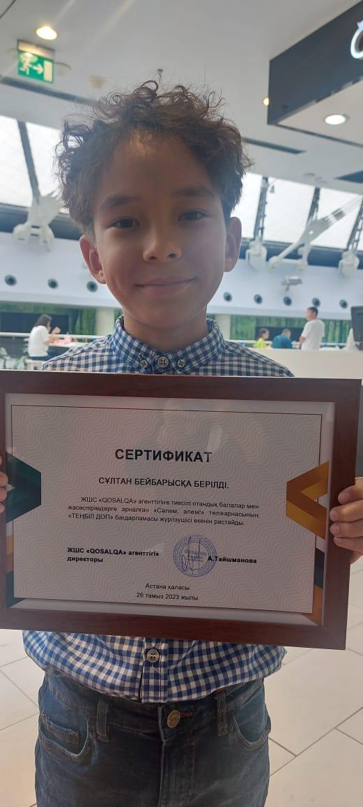 Мектебіміздің бастауыш сынып оқушысы Сұлтан Бейбарыс "QOSALQA" агенттігіне тиесілі отандық балалар мен жасөспірімдерге арналған "Сәлем, әлем!" телеарнасының "ТЕҢБІЛ ДОП" бағдарламасының жүргізуші атанды. Құттықтаймыз! Өмір жолыңыз ашық, болашағыңыз жарқын болсын деп тілейміз!