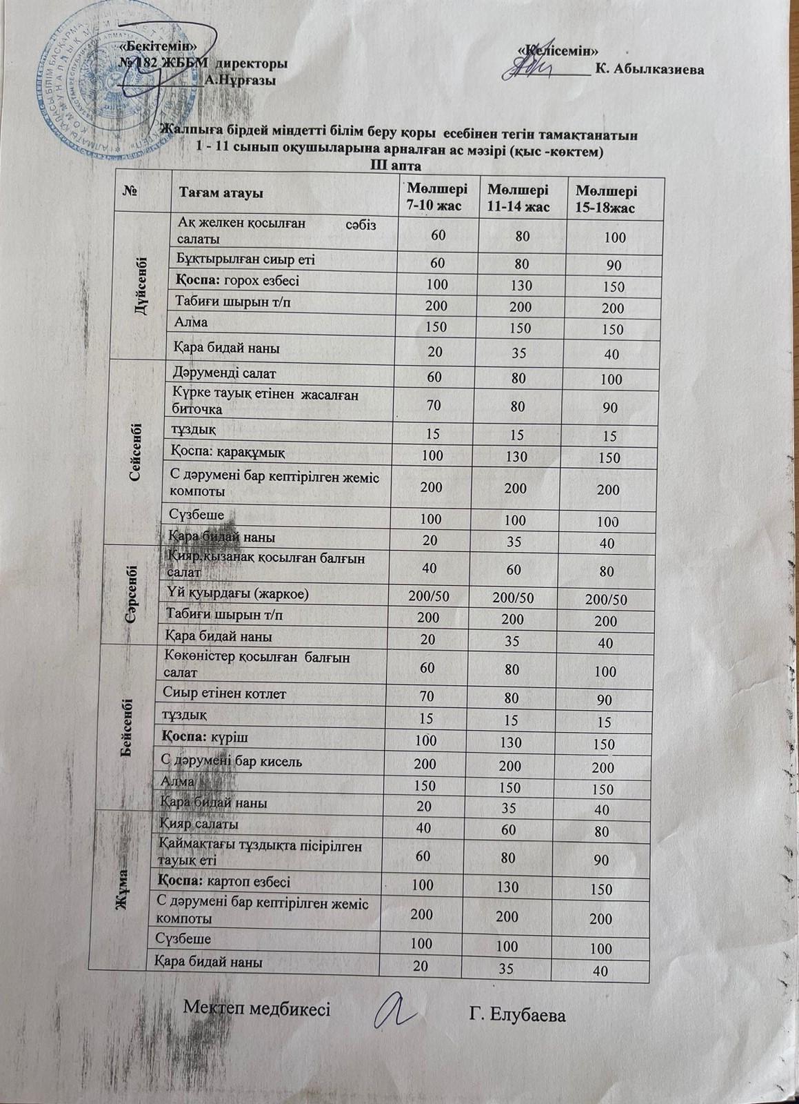 » Ас мәзірі 3-апта