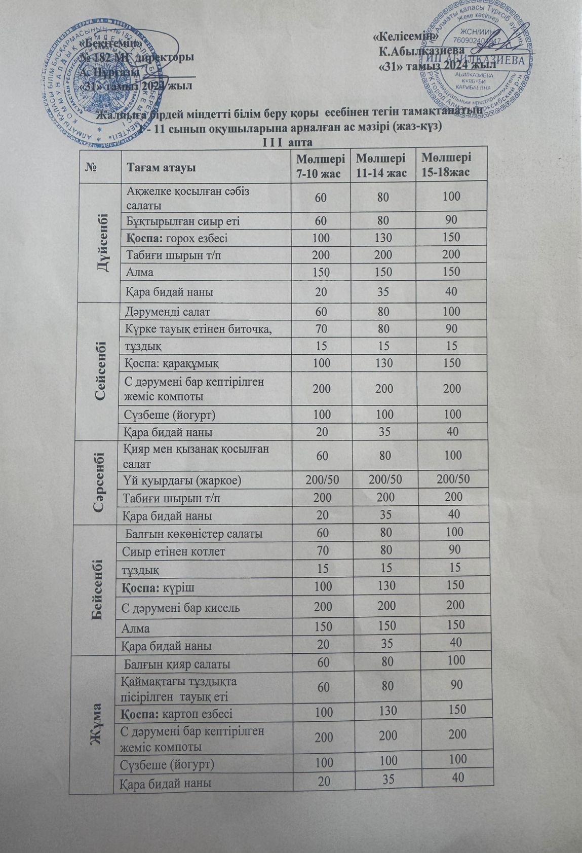 » Ас мәзірі 3-апта