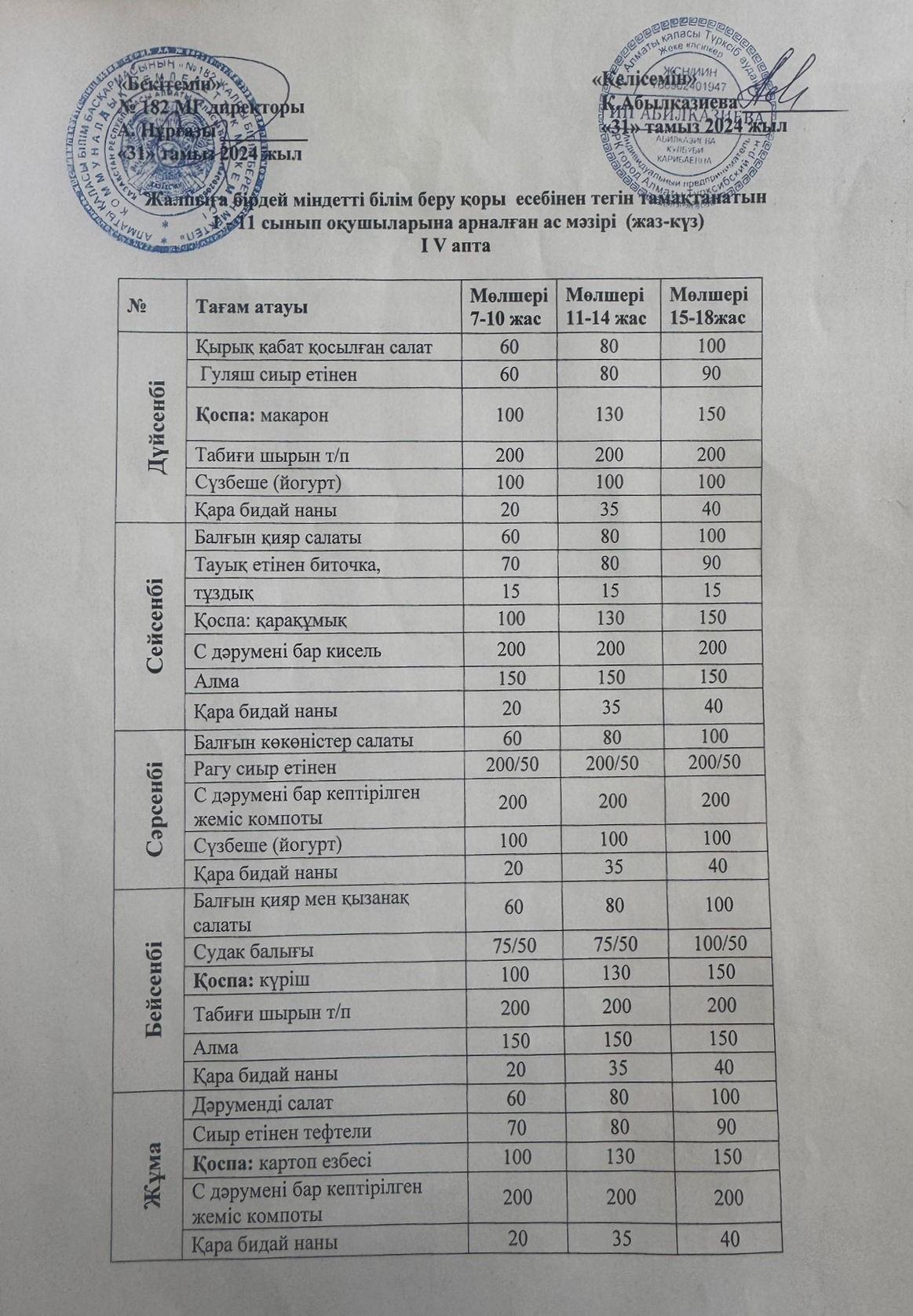Ас мәзірі 1 апта, 5 - күн