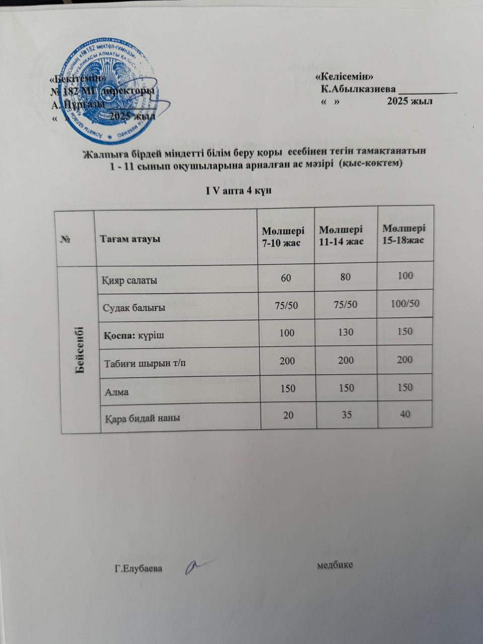» Ас мәзірі 4 апта 4 күн