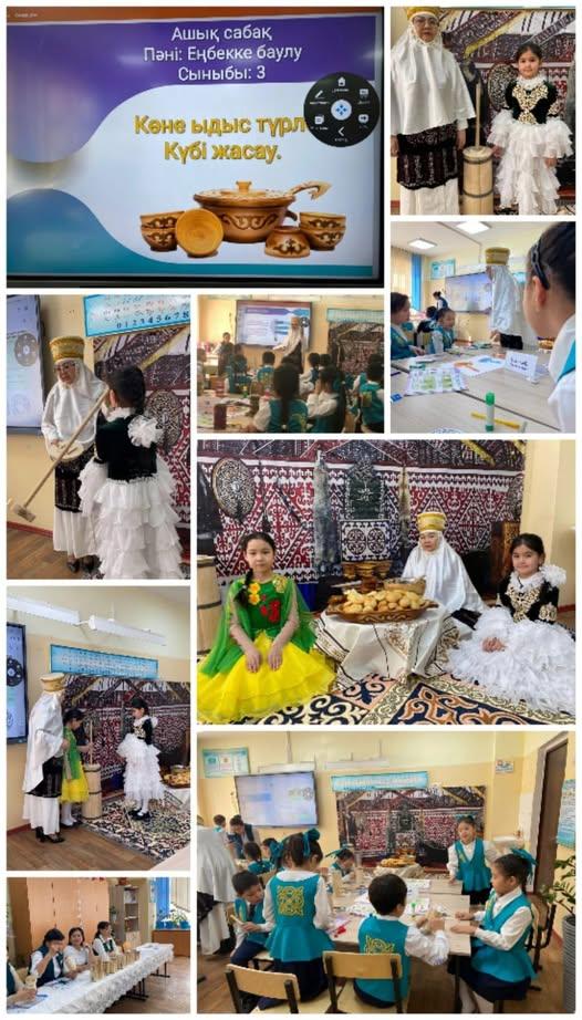 Семинар барысында бастауыш сынып мұғалімі Байсенгирова Кымбат 3 "Е" сыныбына еңбекке баулу пәнінен «Күбі жасау» тақырыбында сабақ өтіп, өз тәжірибесімен бөлісті.