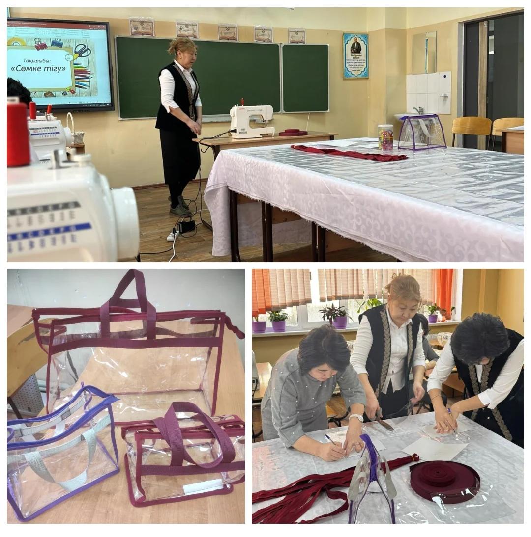 №182 мектеп-гимназиясында "Эстетикалық бағыттағы пәндерді оқытуда жаңа әдіс-тәсілдер арқылы оқушының шығармашылық қабілеттерін дамыту" тақырыбындағы эстетикалық пәндер бірлестігінің онкүндігі аясында көркем еңбек пәні мұғалімі Бейсбаева Г.У. "Сөмке тігу" тақырыбында шеберлік сабағын өткізді.