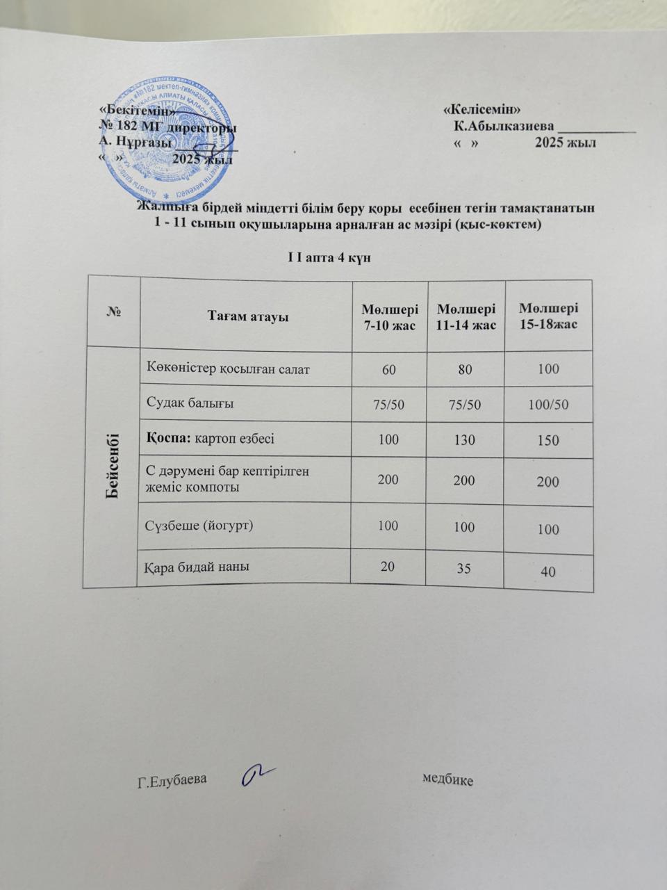 Ас мәзірі 2 апта 4 күн