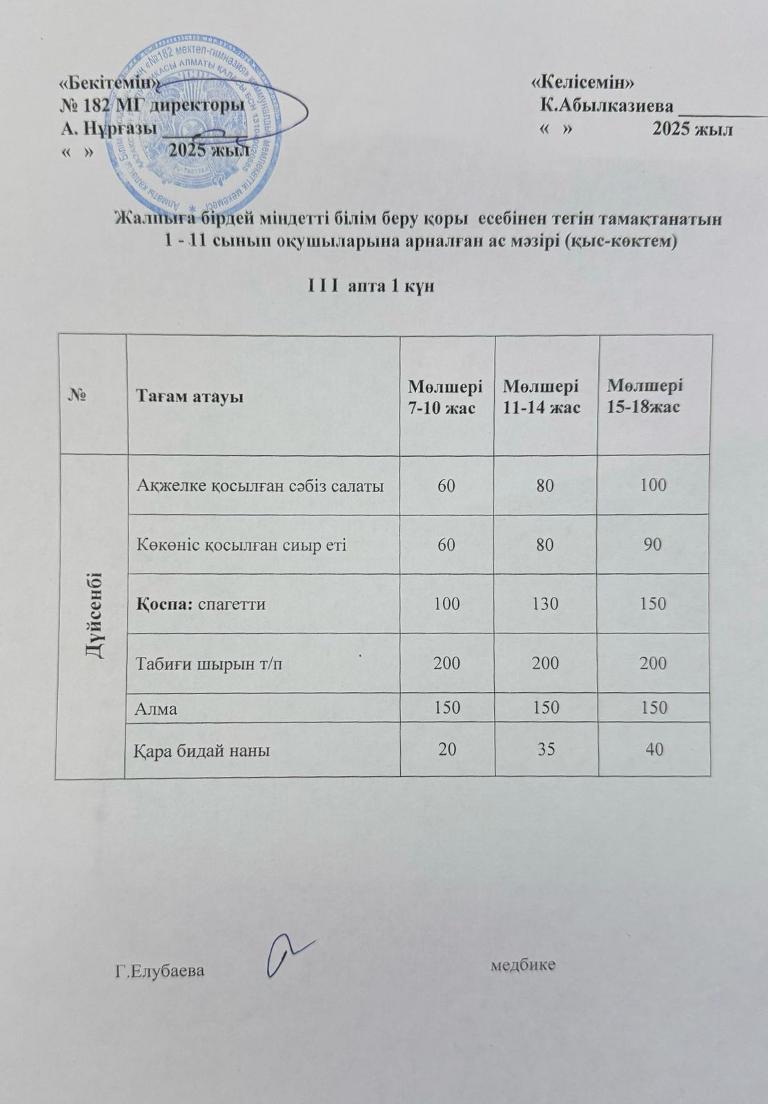 » Ас мәзірі 3 апта 1 күн