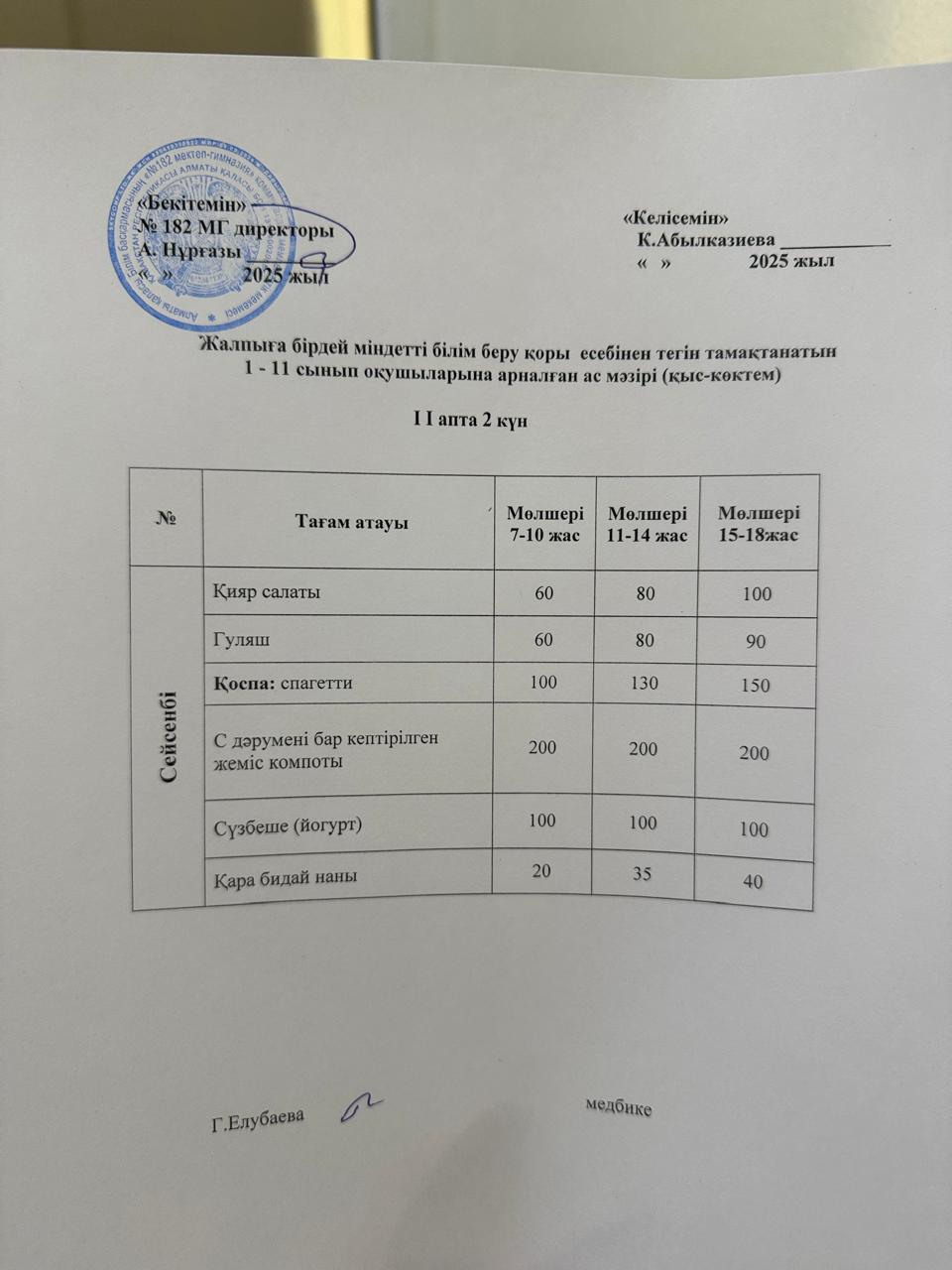 » Ас мәзірі 2 апта 2 күн