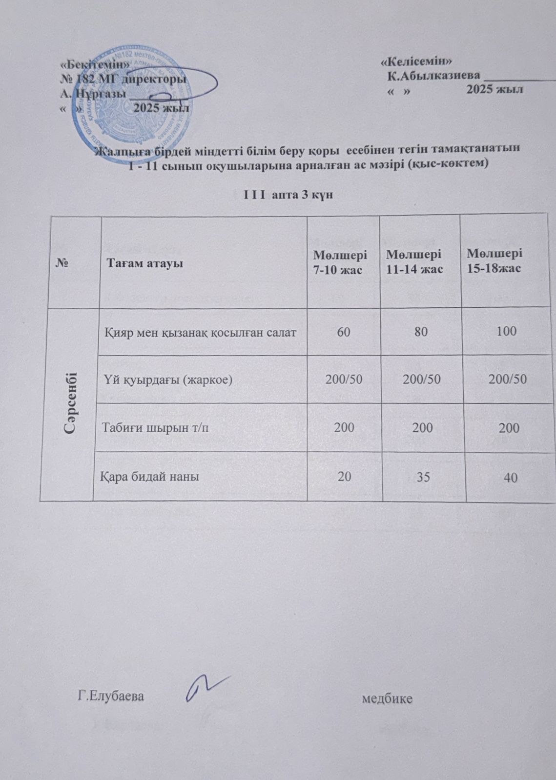 » Ас мәзірі 3 апта 3 күн