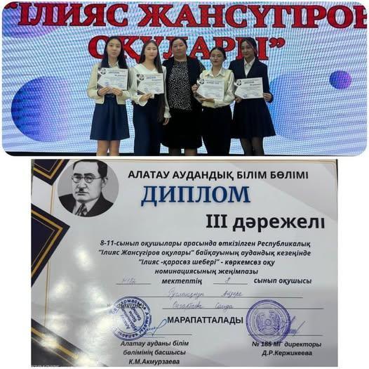 Оқушыларымыз аудандық “Ілияс Жансүгіров оқулары” байқауында ІІІ орынға ие болды