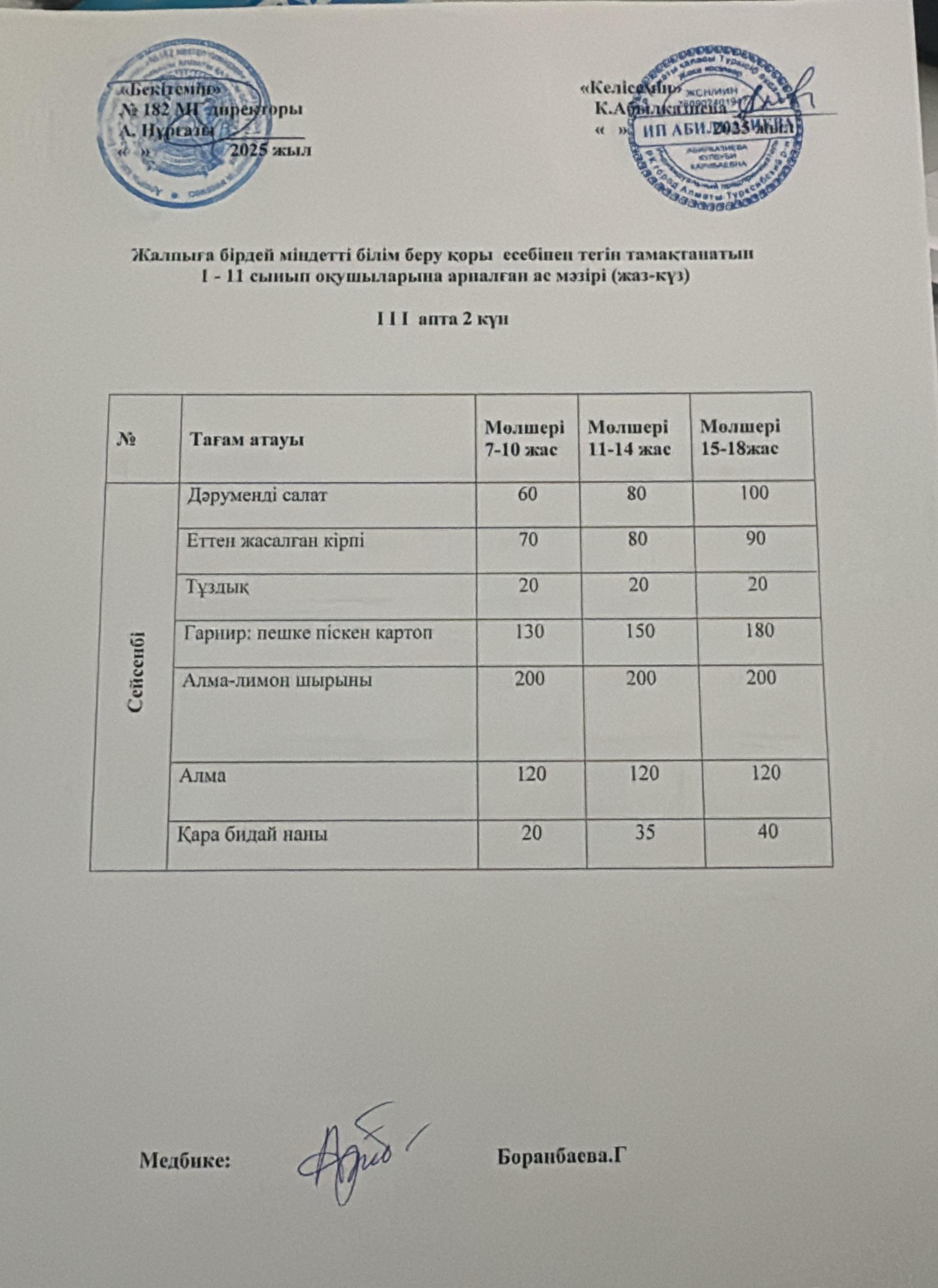 » Ас мәзірі 3 апта 2 күн