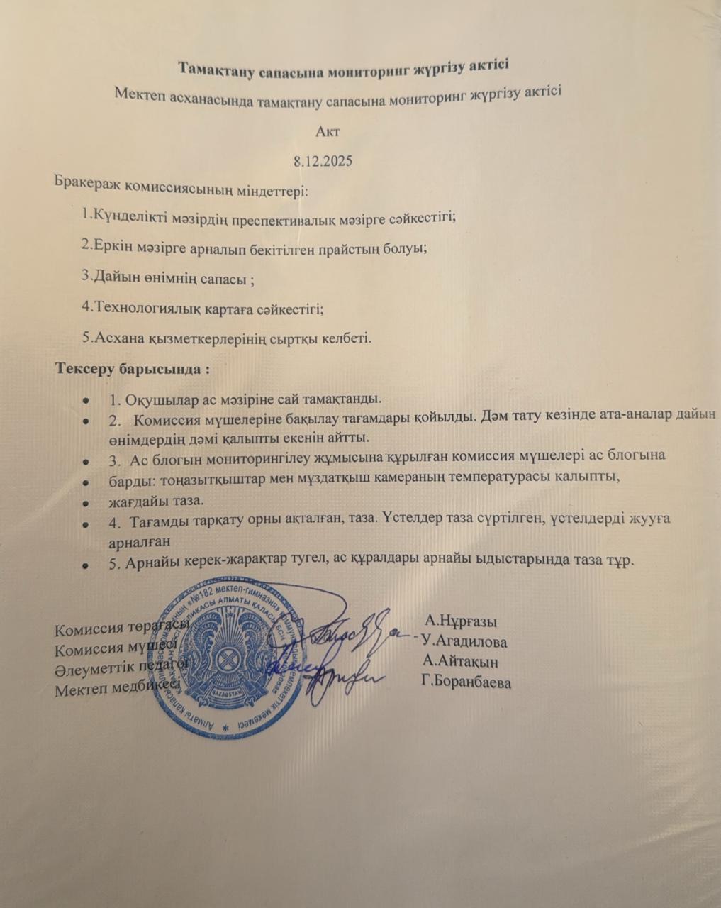 08 желтоқсан 2025 0 1 2 3 4 5 Мектеп асханасында тамақтану сапасына мониторинг жүргізу актісі Осы беттің QR-коды:QR-код этой страницы: