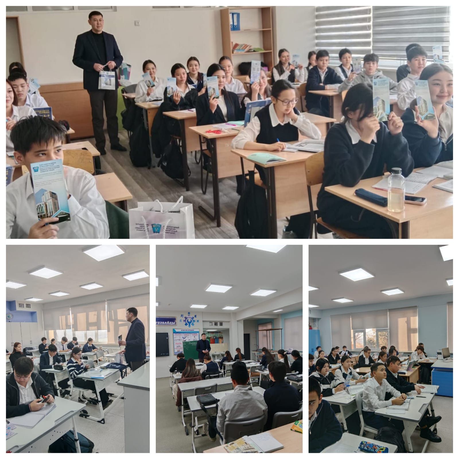 27.11.2025ж.күні Халықаралық көліктік-гуманитарлық университеті мен Алматы техника-экономикалық қатынас жолдары колледжінің оқытушылары келіп, 9–11 сынып оқушыларына болашақ мамандық таңдау бойынша мазмұнды түсіндірме жұмыстарын жүргізді.