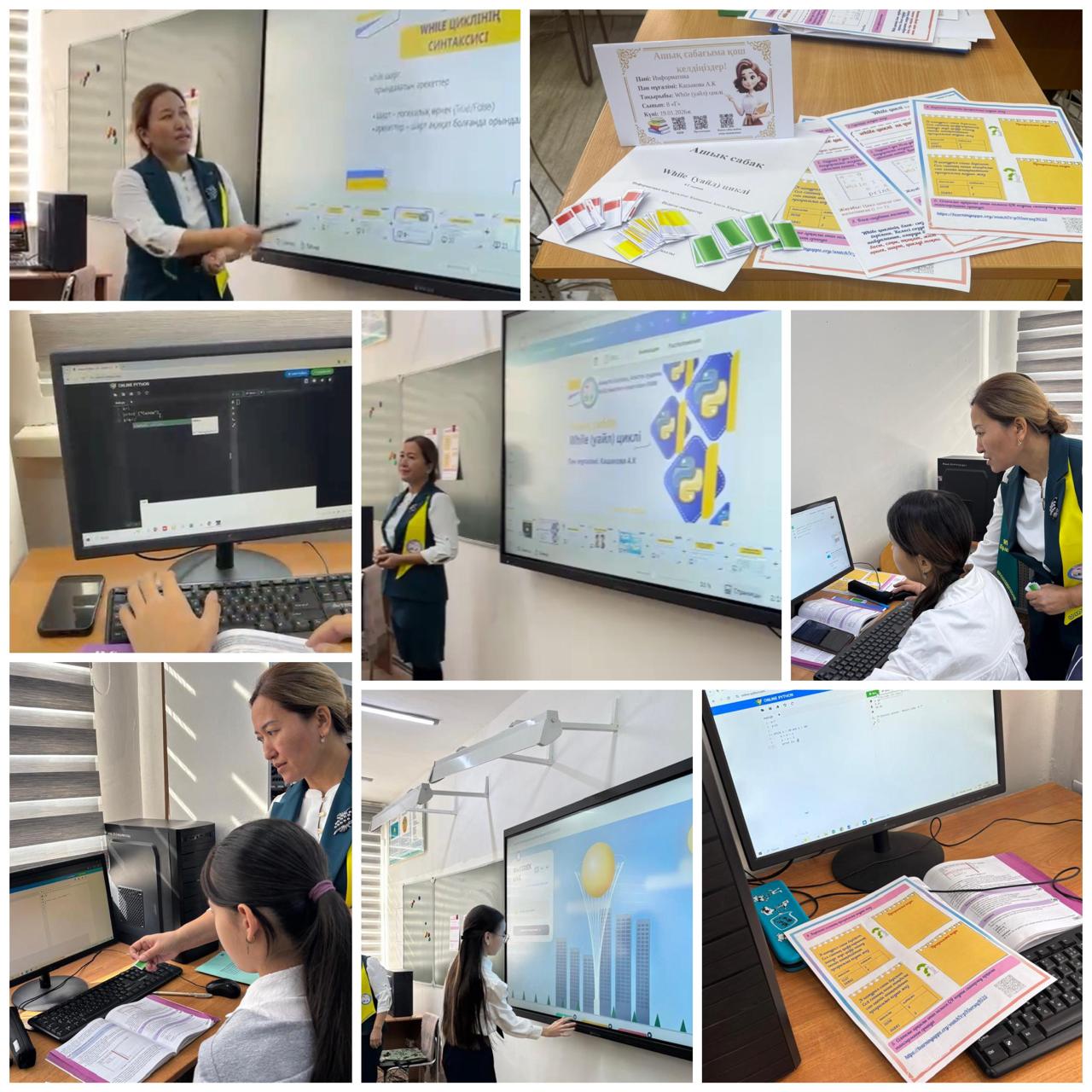 19.01.2026ж. күні жаратылыстану-математика әдістемелік бірлестігінің «Ғылым тілі-сандар мен заңдар» тақырыбындағы онкүндігінің іс-шаралар жоспарына сәйкес, информатика пәні мұғалімі Кашакова Асель Карчаловна 8 «Г» сыныбына "While (уайл) циклі" тақырыбында ашық сабақ өткізді. Сабақтың мақсаты: оқушыларға while цикл операторын пайдалануды үйрету, циклдің жұмыс істеу принципін түсіндіру және бағдарламалау барысында шартты қайталау құрылымдарын тиімді қолдануға баулу. Сабақ барысында оқушылар алгоритм құру, циклдік командаларды жазу, есептерді кезең-кезеңімен орындау арқылы логикалық ойлау қабілеттерін дамытты. Теориялық білім практикалық тапсырмалармен ұштастырылып, оқушылар while циклі арқылы қарапайым және күрделі есептерді шешіп көрді. Сабақ интерактивті әдістермен, көрнекі мысалдармен және практикалық жұмыстармен ұйымдастырылып, оқушылардың пәнге деген қызығушылығын арттырды.