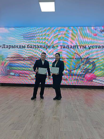 Жас педагогтердің шығармашылық әлеуетін және өзін-өзі дамытуына жағдай жасау, білім беру жүйесін жетілдіруге мұғалімдердің кәсіби көзқарасын қалыптастыру мақсатында ұйымдастырылған «Дарынды балаларға-талантты ұстаз» республикалық педагогикалық олимпиадасының аудандық кезеңінде мектеп-гимназиямыздың педагог-психологі Айшова Гульнур Асилбековна ІІІ дәрежелі дипломмен, география пәні мұғалімі Кенжеәлі Олжас Алғыс хатпен марапатталды. Құттықтаймыз!