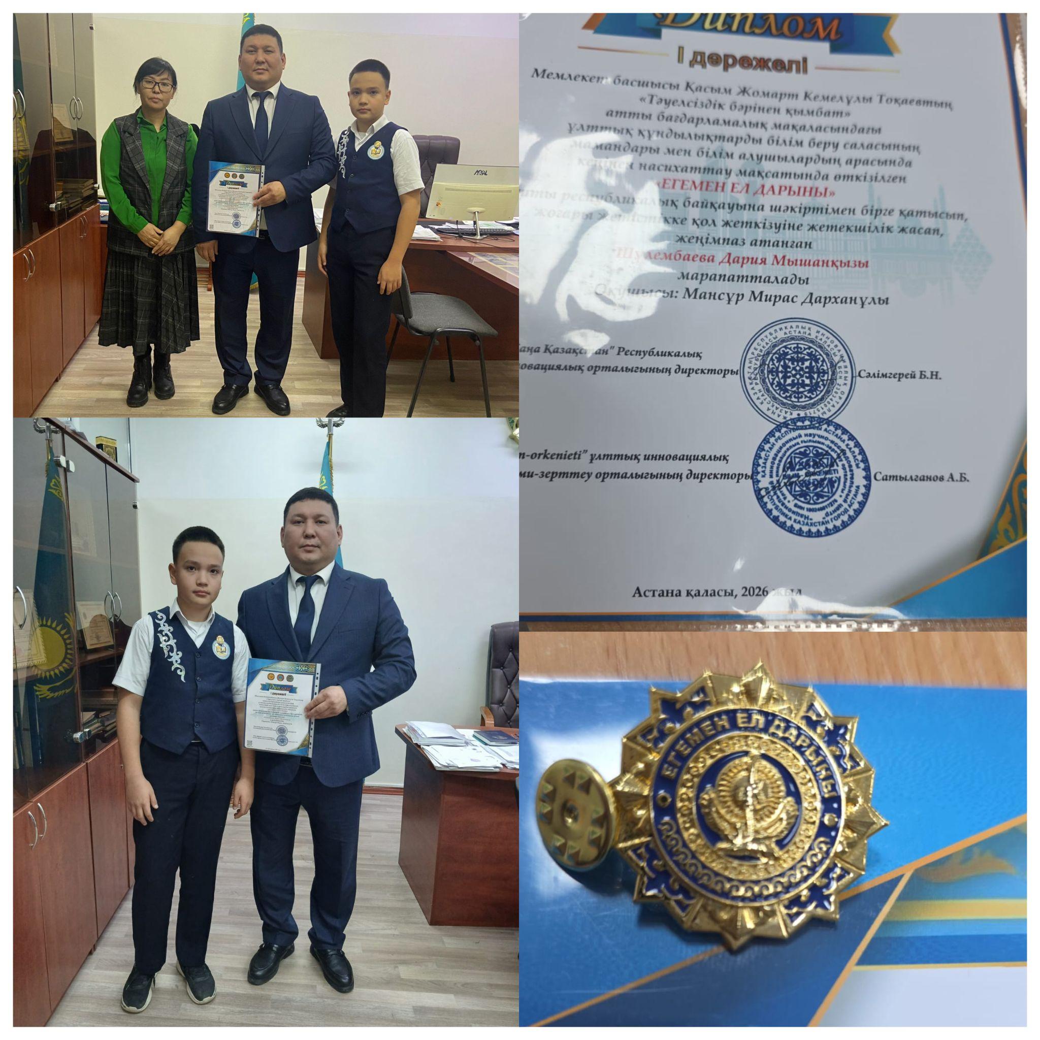 02 наурыз 2026 0 1 2 3 4 5 "Егемен ел дарыны" республикалық байқауы ОҚУШЫЛАРЫМЫЗДЫҢ ЖЕТІСТІКТЕРІМектеп-гимназиямыздың тарих пәні мұғалімі Шүлембаева Д.М. және оқушысы Мансұр Мирас "Егемен ел дарыны" республикалық байқауына шәкіртімен бірге қатысып, І дәрежелі дипломмен марапатталды. Құттықтаймыз! Осы беттің QR-коды:QR-код этой страницы: