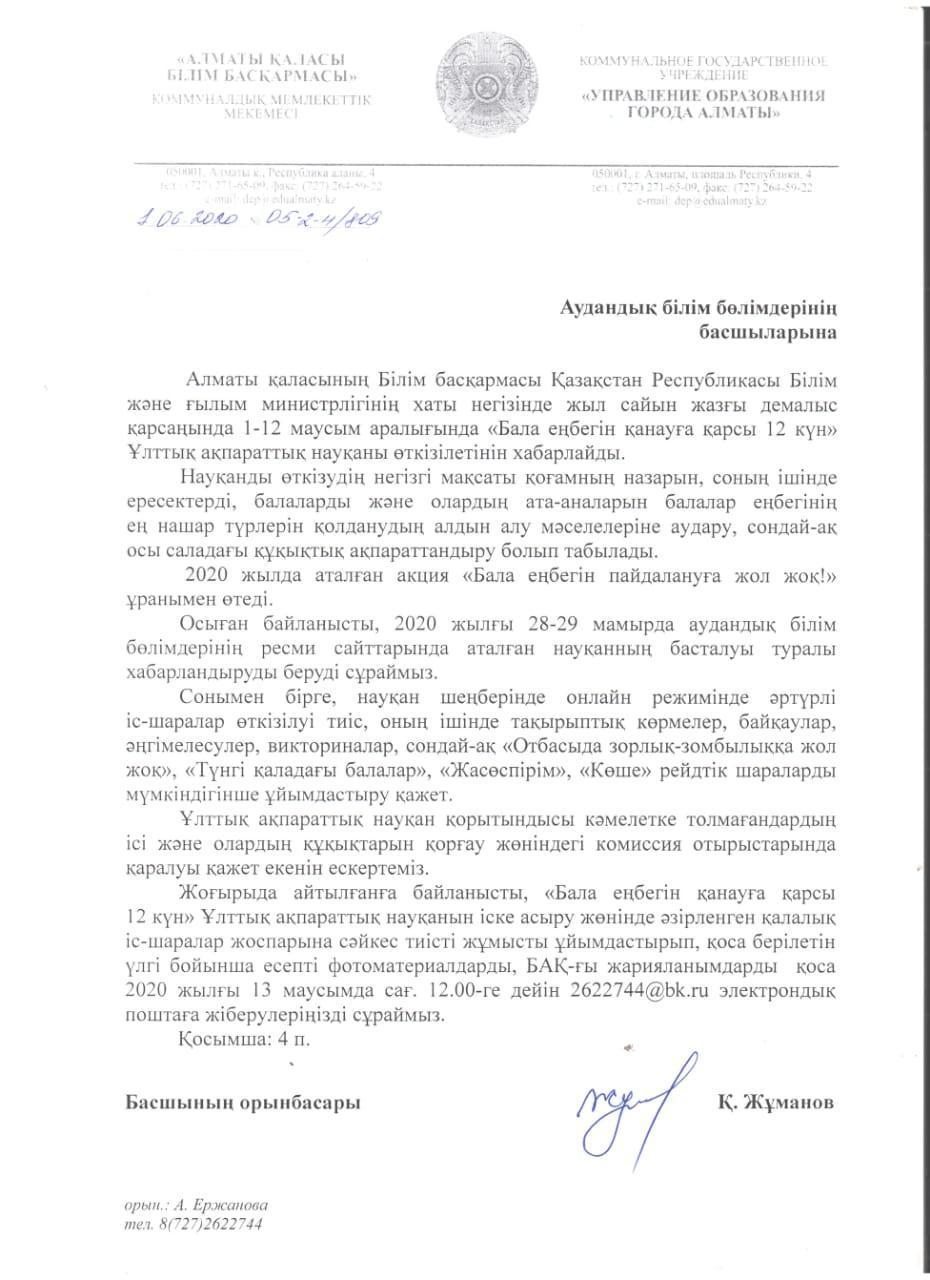 01 маусым 2020 0 1 2 3 4 5 "Бала еңбегін қанауға қарсы 12 күн" Ұлттық ақпарат науқаны Осы беттің QR-коды:QR-код этой страницы: