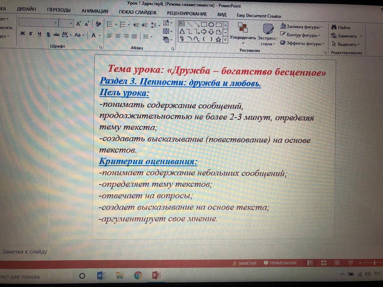 30 қараша 2020 0 1 2 3 4 5 "Дружба – богатство бесценное" тақырыбындағы ашық сабақ АШЫҚ САБАҚТАРТақырыбы: Дружба – богатство бесценноеСыныбы: 5 "Г"Пән мұғалімі: орыс тілі мен әдебиеті пәні мұғалімі, педагог-зерттеуші Б.С.Тулебаева Осы беттің QR-коды:QR-код этой страницы: