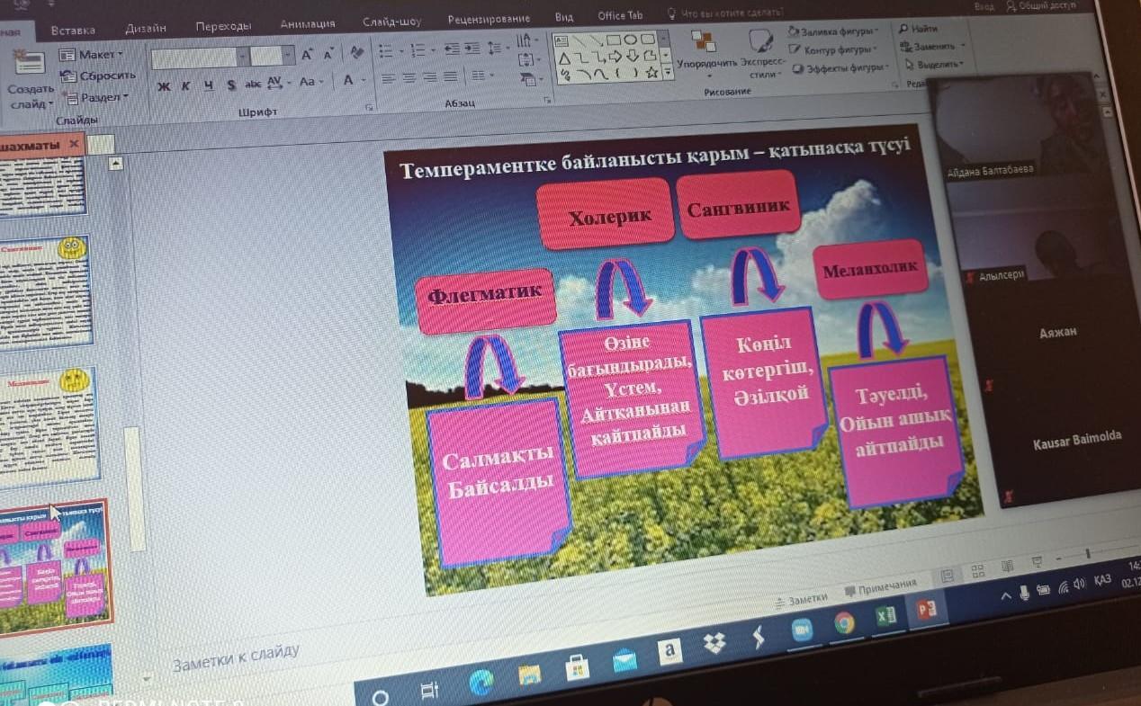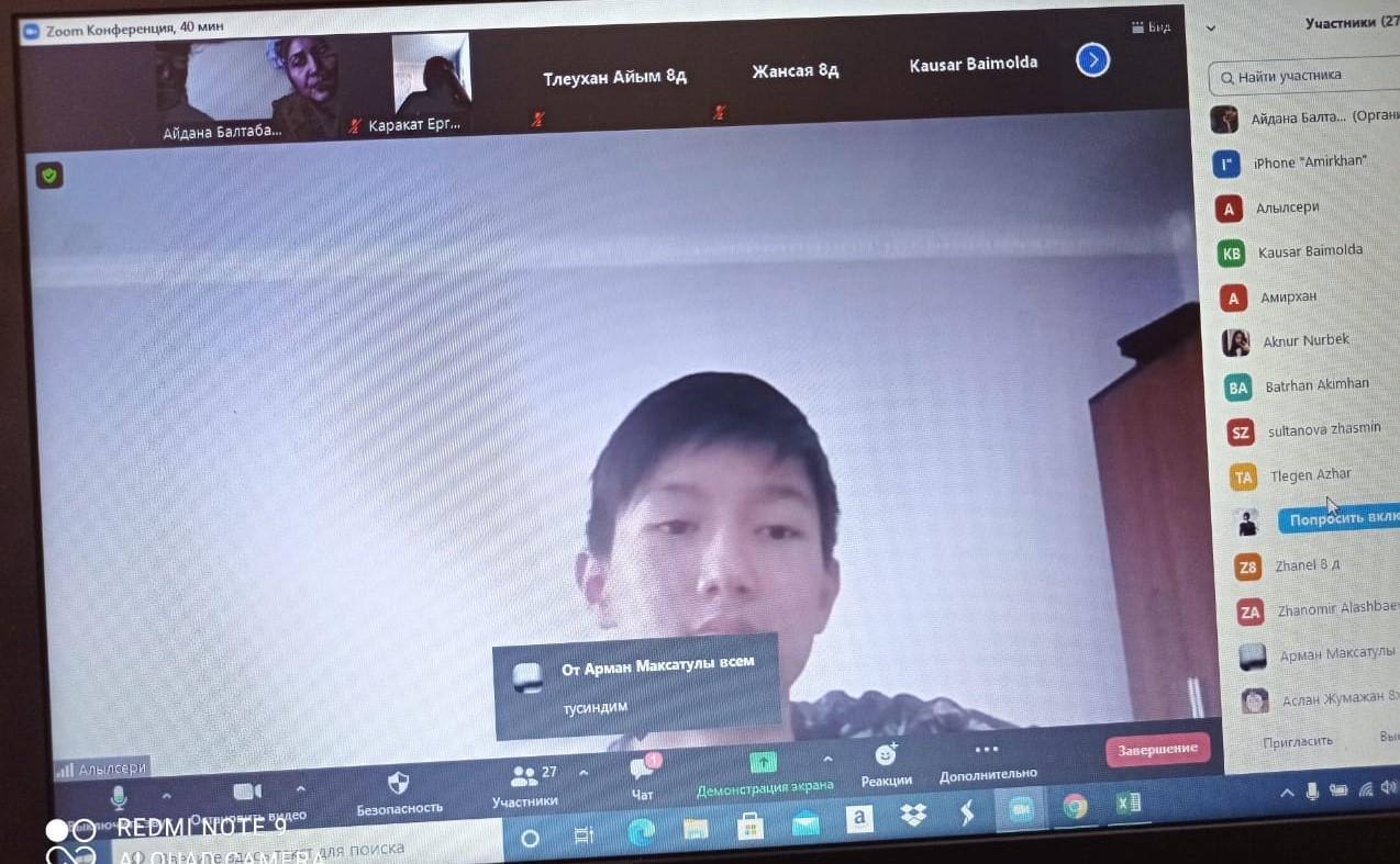 02.12.2020 ж. күні мектебіміздің педагог-психологтары М.Мусанова мен А.Балтабаева 8-сынып оқушыларына "Қасиеттер жарнамасы" тақырыбында психологиялық конференция өткізді. Оқушыларға әр адамның жеке психологиялық ерекшеліктері болатыны, темперамент типіне сәйкес мінездері туралы айтылды. Оқушылар өздерінің бойындағы жақсы қасиеттер туралы айтып, пікір алмасу болды.