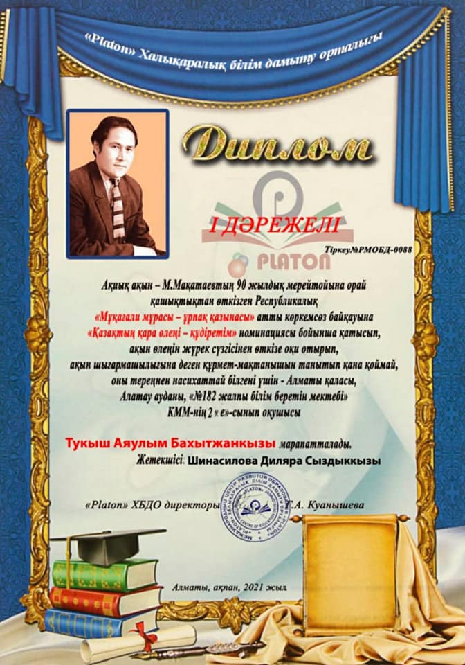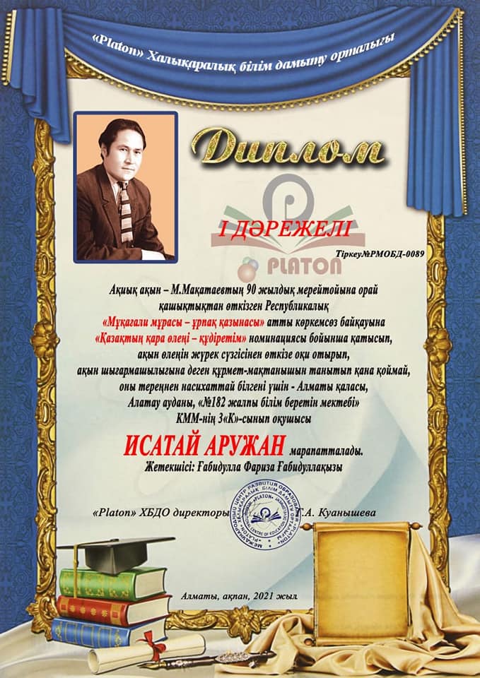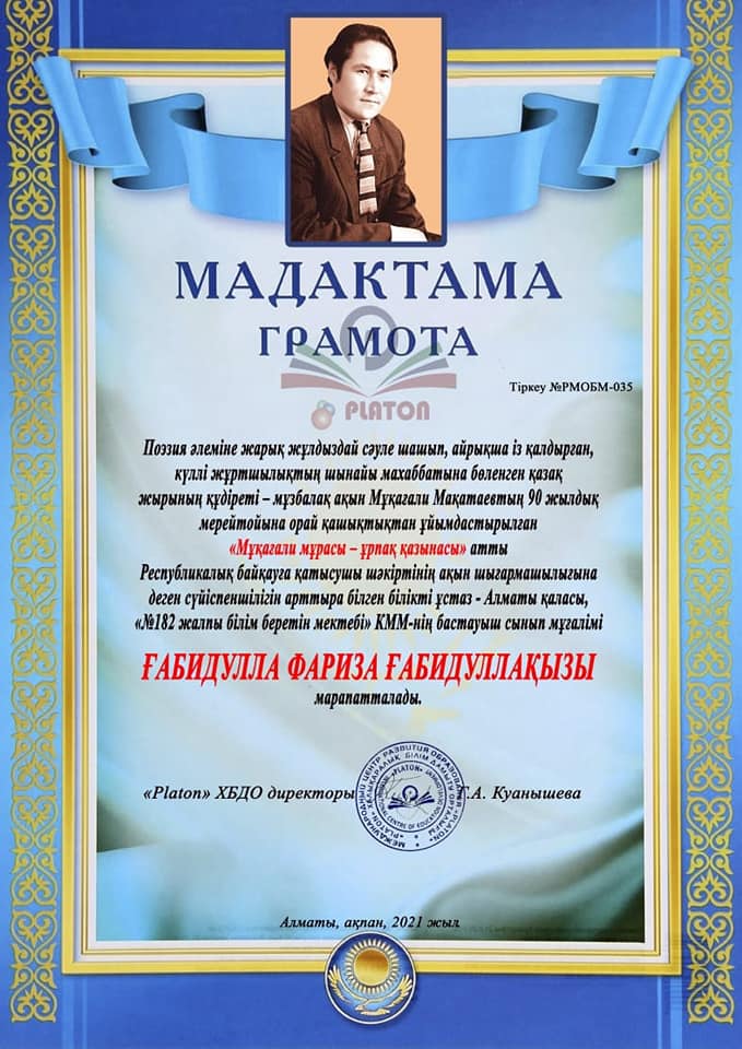 Мектебіміздің бастауыш сынып мұғалімі Ғабидулла Фариза Ғабидуллақызы мен бастауыш сынып оқушылары Исатай Аружан, Тукыш Аяулым, Жақсылық Нұр ақиық ақын Мұқағали Мақатаевтың 90 жылдығына орай ұйымдастырылған бауқаулардың жеңімпаздары атанды. Құттықтаймыз!