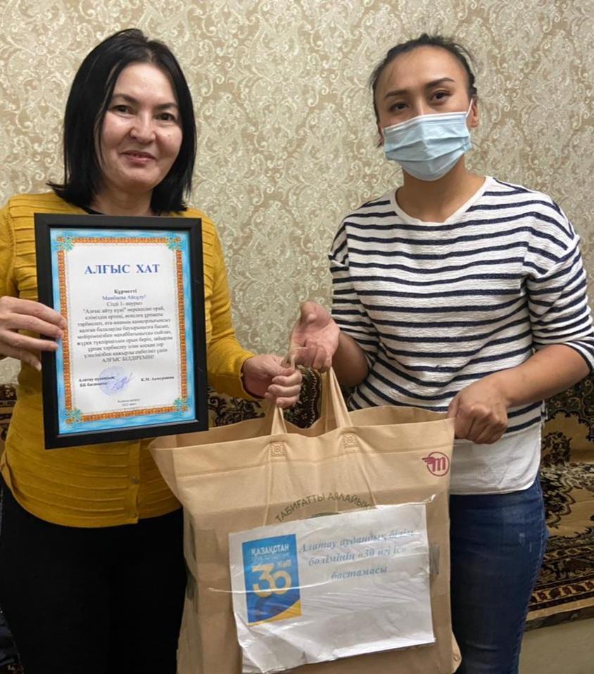 Қазақстан Республикасы тәуелсіздігінің 30жылдық мерейтойына және 1-наурыз еліміздің барлық азаматтары бір-біріне Алғыс айту күніне орай Алатау ауданы білім бөлімінің басшысы Қ.М Ақмұрзаева ханымның ұйымдастыруымен "30 игі іс" қайырымдылық акциясы аясында Мектебіміздің директоры А.Нұрғазы мырзаның қолдауымен Қамқорлыққа алынған балалардың жанұяларына Алғыс білдіріліп, азық түлікпен көмек көрсетілді.