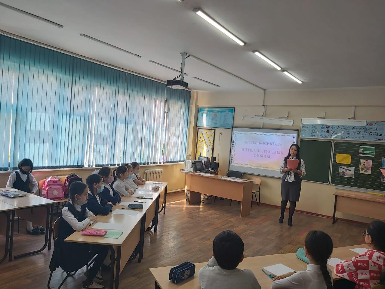 09 наурыз 2021 0 1 2 3 4 5 "Білім бәсекесі" интеллектуалдық ойыны ИНТЕЛЛЕКТУАЛДЫҚ ОЙЫН Қатысушылар: 4-сынып оқушыларыКүні: 09.03.2021ж. ойын тақырыбы: "Білім бәсекесі"Ұйымдастырушылар: қазақ тілі мен әдебиеті пәні мұғалімдері Сулейменова Жазира, Малаева Айда Осы беттің QR-коды:QR-код этой страницы: