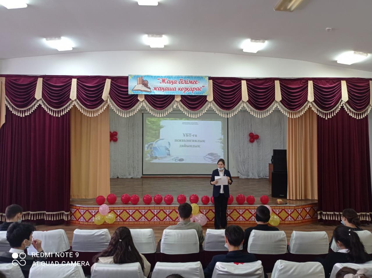 Мектебіміздің педагог-психологтары М.К.Мусанова мен А.С.Балтабаева "ҰБТ-ға психологиялық дайындық" тақырыбында 11-сынып оқушыларымен тренинг өткізді. Мақсаты: қобалжу, сенімсіздік, стресстік жағдайларды жеңе білуге және Ұлттық бірыңғай тестілеу кезіндегі өздеріне сенімділіктерін арттыра түсуге көмектесу. Оқушылар сұрақ-жауаптарға жауап беріп, өз пікірлерін айтып, ойын-жаттығуларға белсене қатысты. Тренинг соңында кері байланыс жасалып, ұсыныстар айтылды.