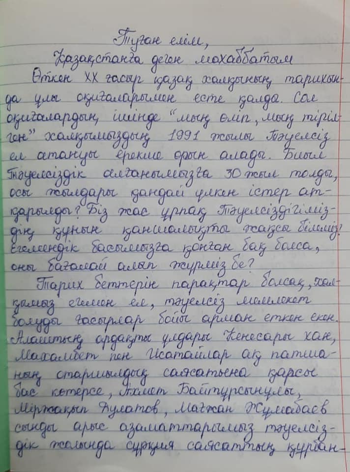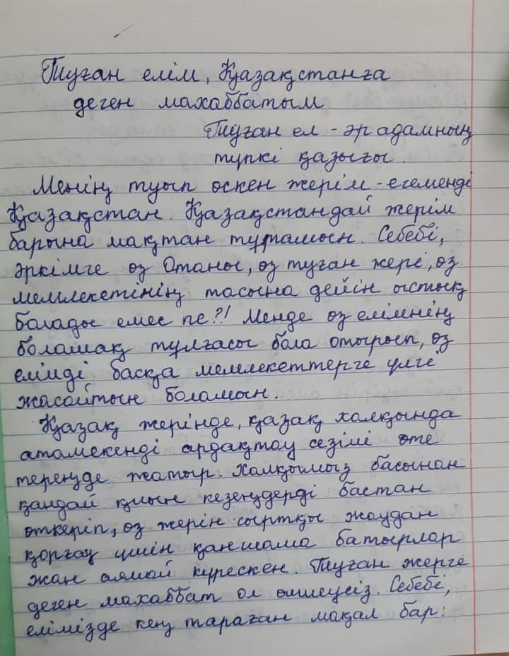 "Туған елім, Қазақстанға деген махаббатым" тақырыбындағы аудандық эссе байқауы