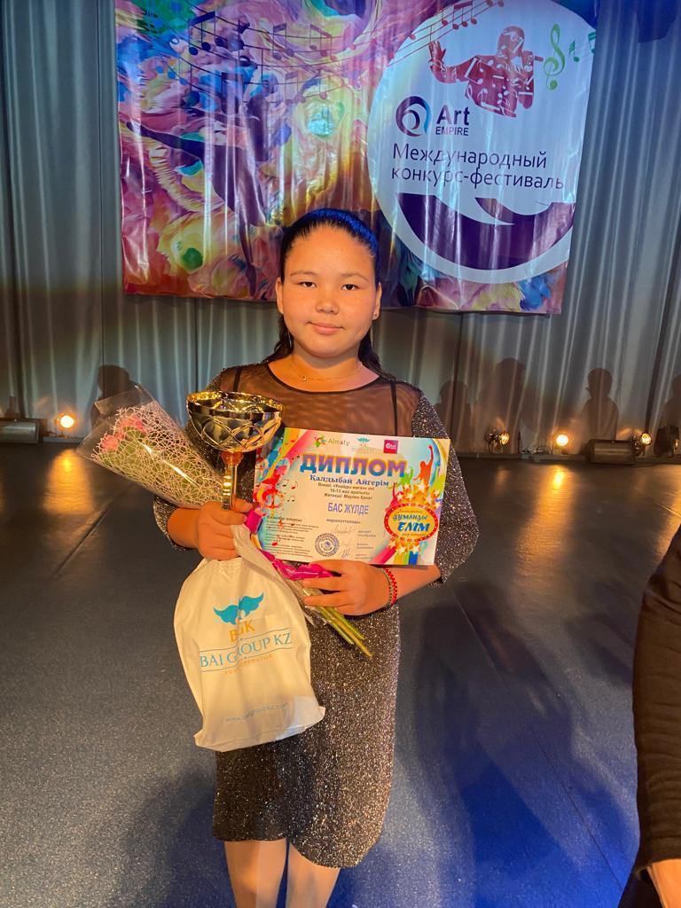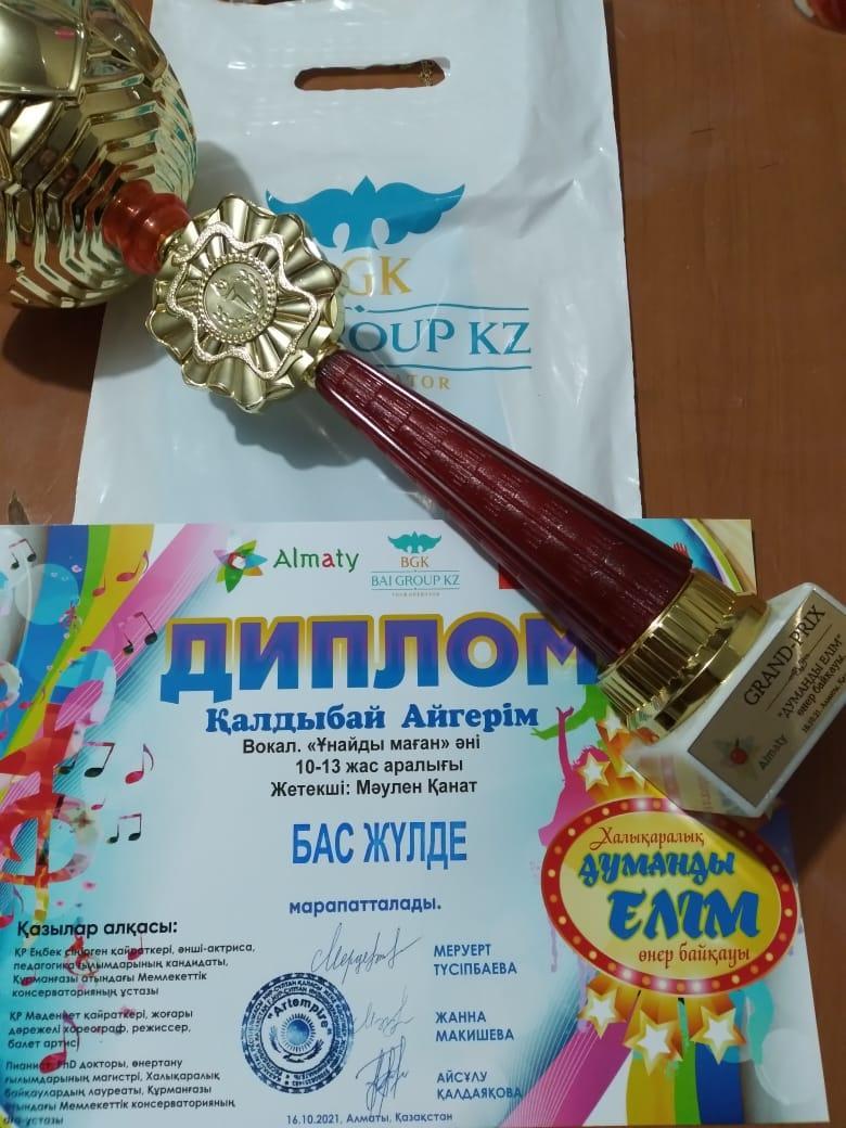 Мектебіміздің 8 "Д" сынып оқушысы Қалдыбай Айгерім халықаралық "Думанды елім" өнер байқауында вокал бойынша 10-13 жас аралығында Бас жүлдені иеленді. Құттықтаймыз! Өнерімен жоғары биіктен көріне берсін деген тілек білдіреміз!