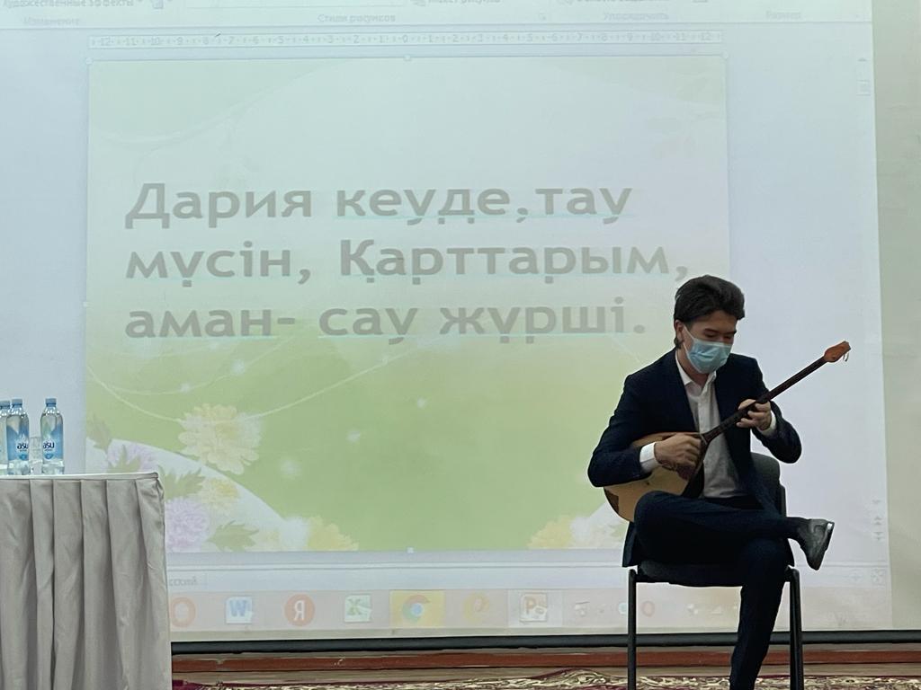 Кездесу барысында мектебіміздің мақтанышы бірнеше конкурстар жүлдегері, күйші Арпабай Дәулеттің орындауында «Балбырауын» күйі, 10 "А "сынып оқушылары Бүргенбаева Назерке, Жолдасбек Нурила, Абуова Қарақат, Сейталы Ясин "Қайырымды қайран қарттарым" тақырыбында өлең оқыды. Жас ұрпаққа төзімділік пен даналықтың үлгісі болған Мәли ата өнер көрсеткен оқушыларға батасын беріп, жарқын болашақ тіледі.