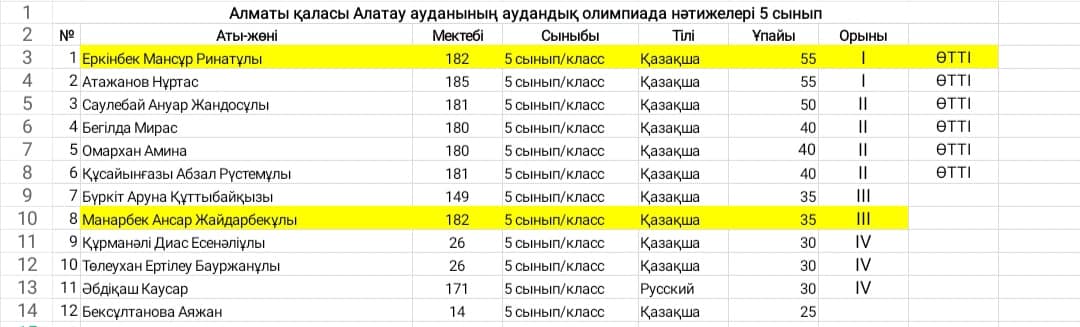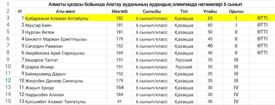ОҚУШЫЛАРЫМЫЗДЫҢ ЖЕТІСТІКТЕРІ