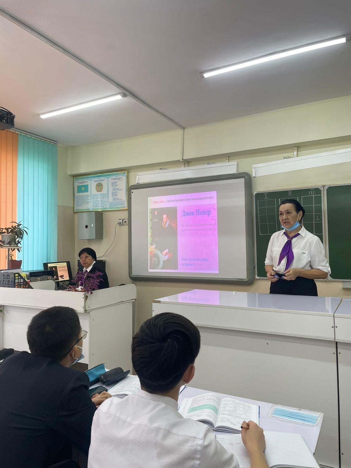 «Цифрлық әлемге – кемел біліммен» аты математика, физика, информатика пәндер апталығы жоспарына сәйкес математика пәннің мұғалімі Шорманова Нұржамал 11 «А» сыныбымен «Санның логарифмі және оның қасиеттері» тақырыбында ашық сабақ өтті. Сабақта оқушылар топтық , жұптық, жеке тапсырмалар орындады. Сабақта барысында «Мен саған,сен маған» әдісі арқылы үй жұмысын тексерді. «Тапсырма», «Ойлан, жұптас, бөліс», «Ой қозғау» әдістері тиімді қолданылды. Бағалау әр кезеңде жүргізіліп отырды. Сабақтың соңында оқушылардан «Жалғасын тап» әдісі кері байланыс алынып, сабақтан алған әсерлері туралы әсерімен бөлісті. Сабақ жоғары денгейде өтті.