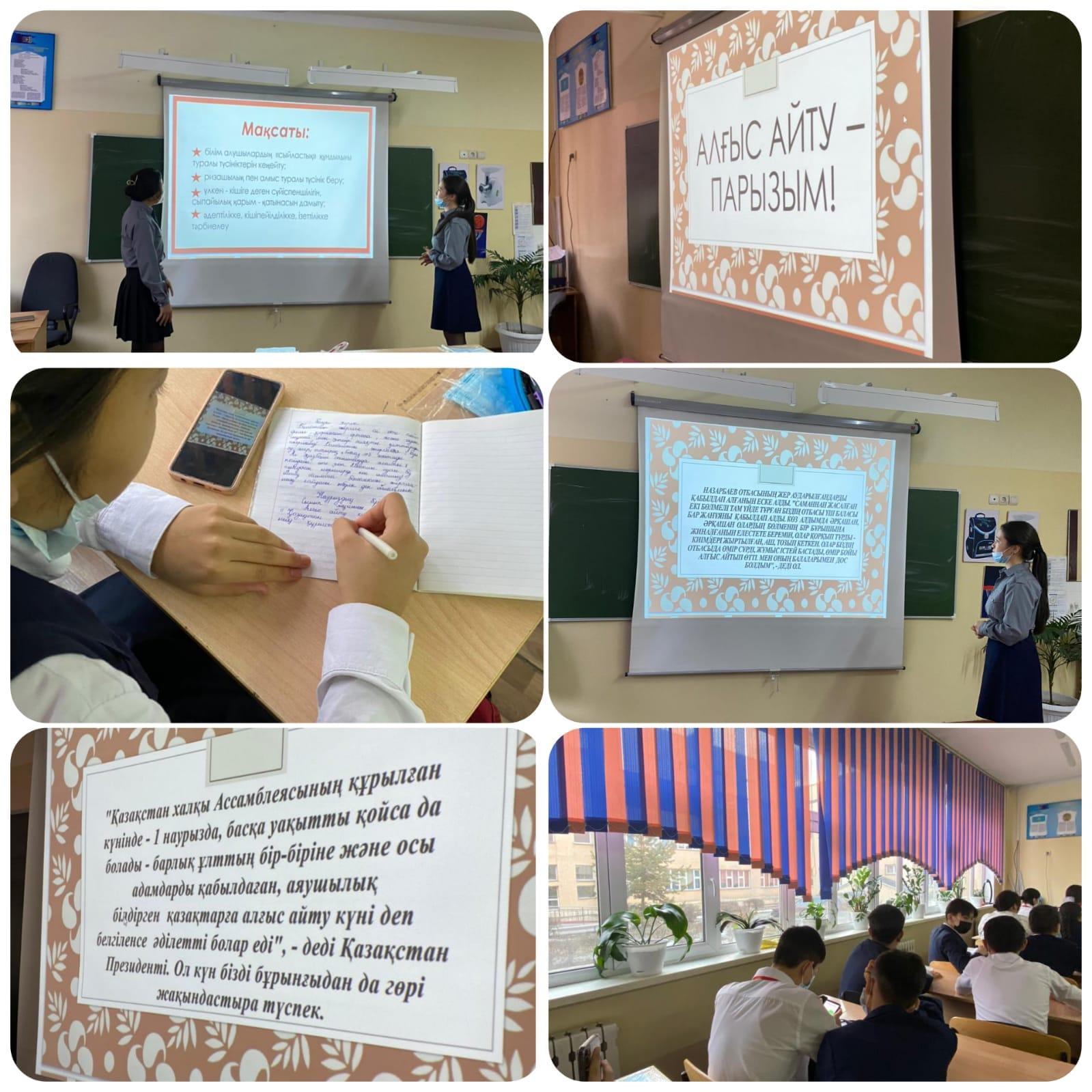 Мектебіміздің "Серт" полиция көмекшілері отряды Алғыс айту күніне орай "Алғыс айту - парызым" тақырыбында 8 "В"-сынып оқушыларымен тәрбие сағатын өтті.