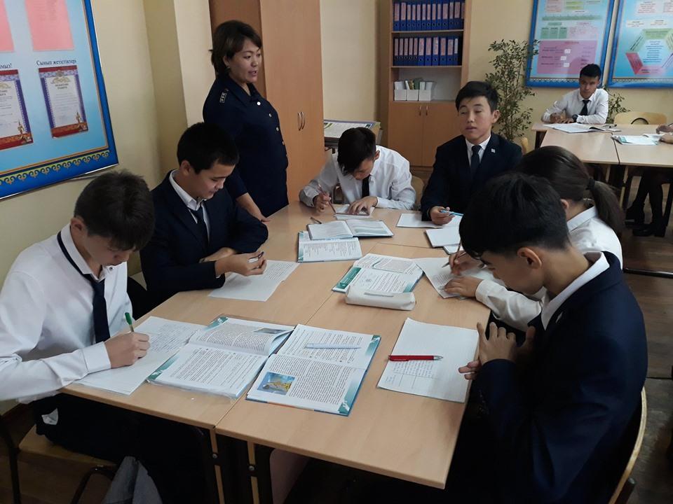 Алатау ауданы №182 жалпы білім беретін мектеп инспекторы, полиция капитаны А.Қ.Джаныспаева 5-11 сыныптың ұлдарынан жасөспірімдер арасында бопсалауды болдырмау және алдын алу мақсатында сауалнама алды