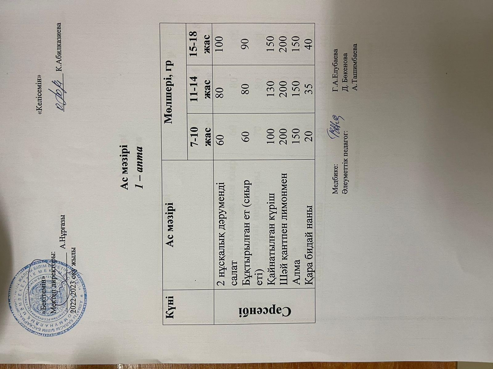 » Ас мәзірі