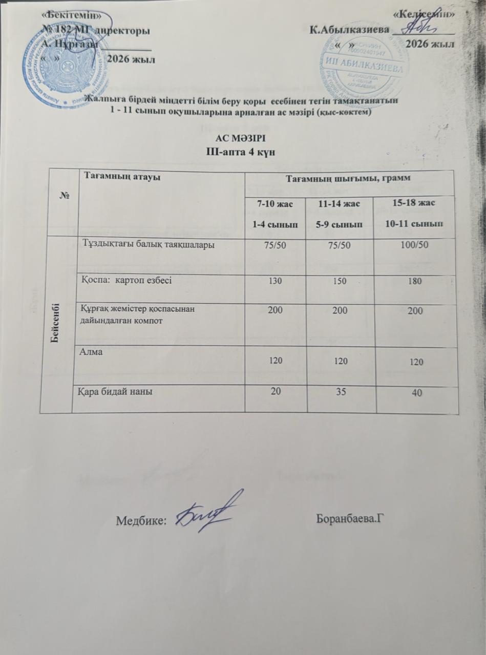 » Ас мәзірі 3 апта 4 күн